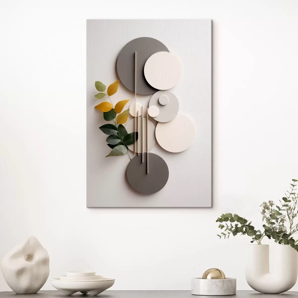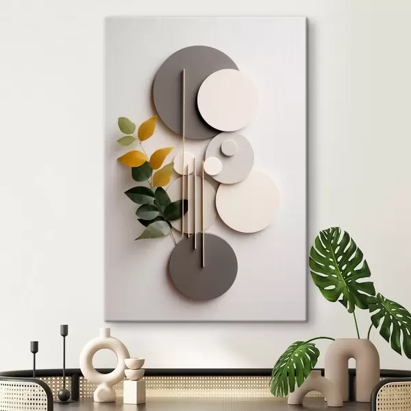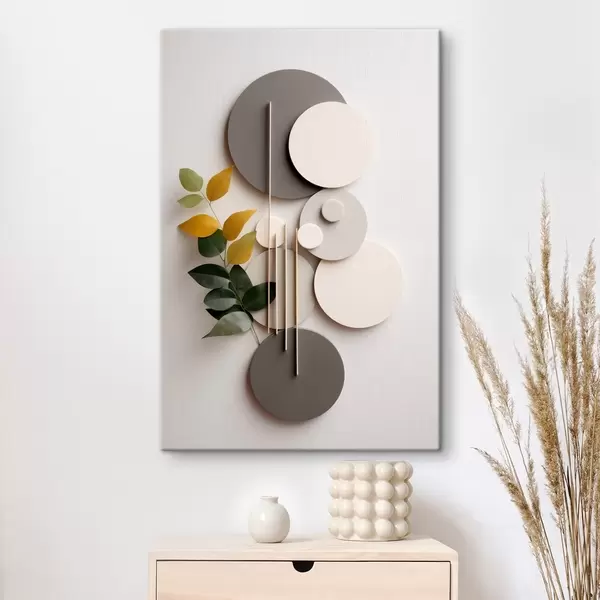 Gemälde Geometrische Kreise mit einem grünen, belaubten Zweig Art. s48598
