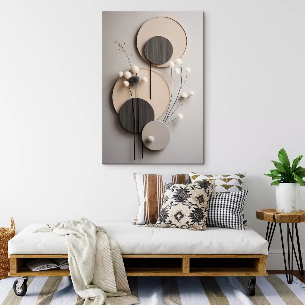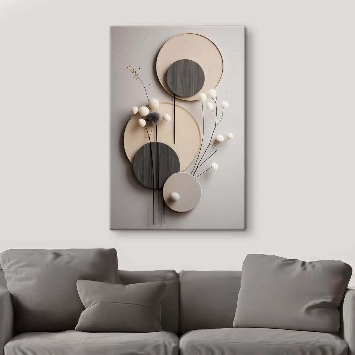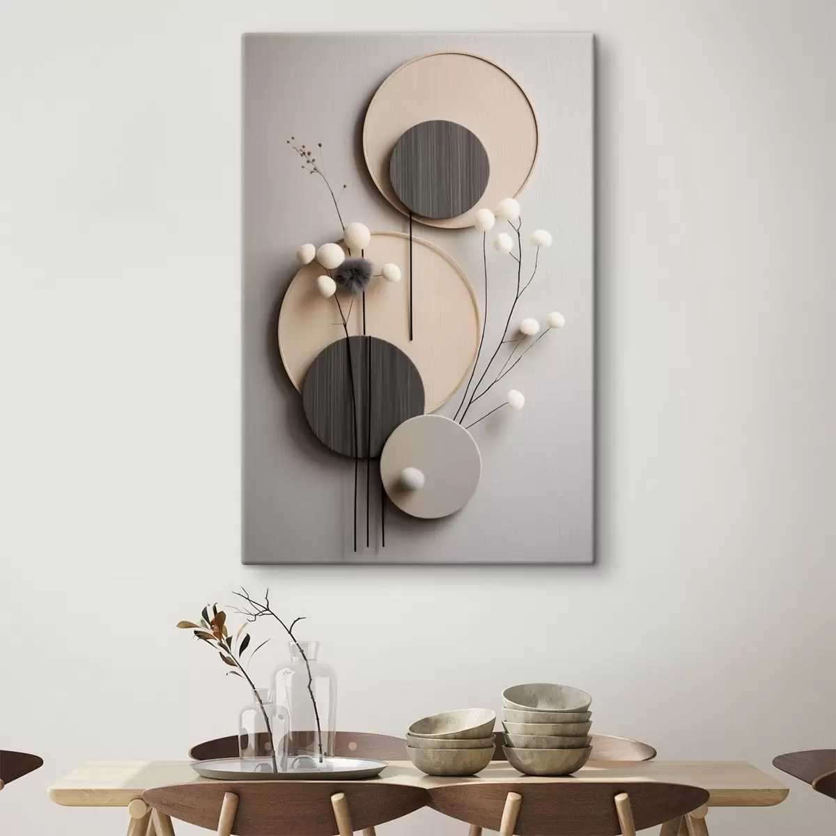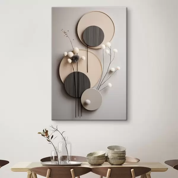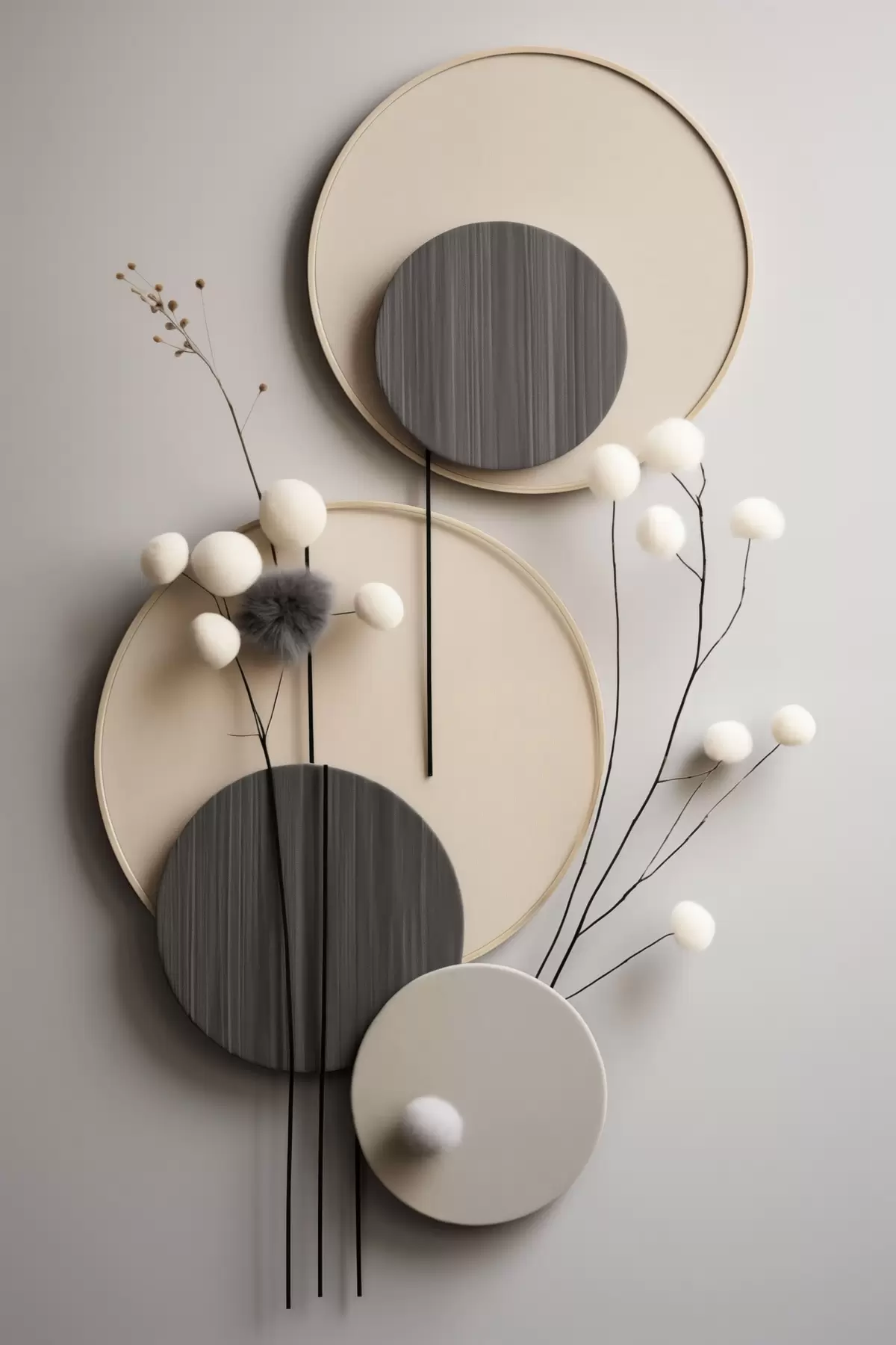 Gemälde Runde Paneele mit trockenen Zweigen und weichen Kugeln Art. s48601