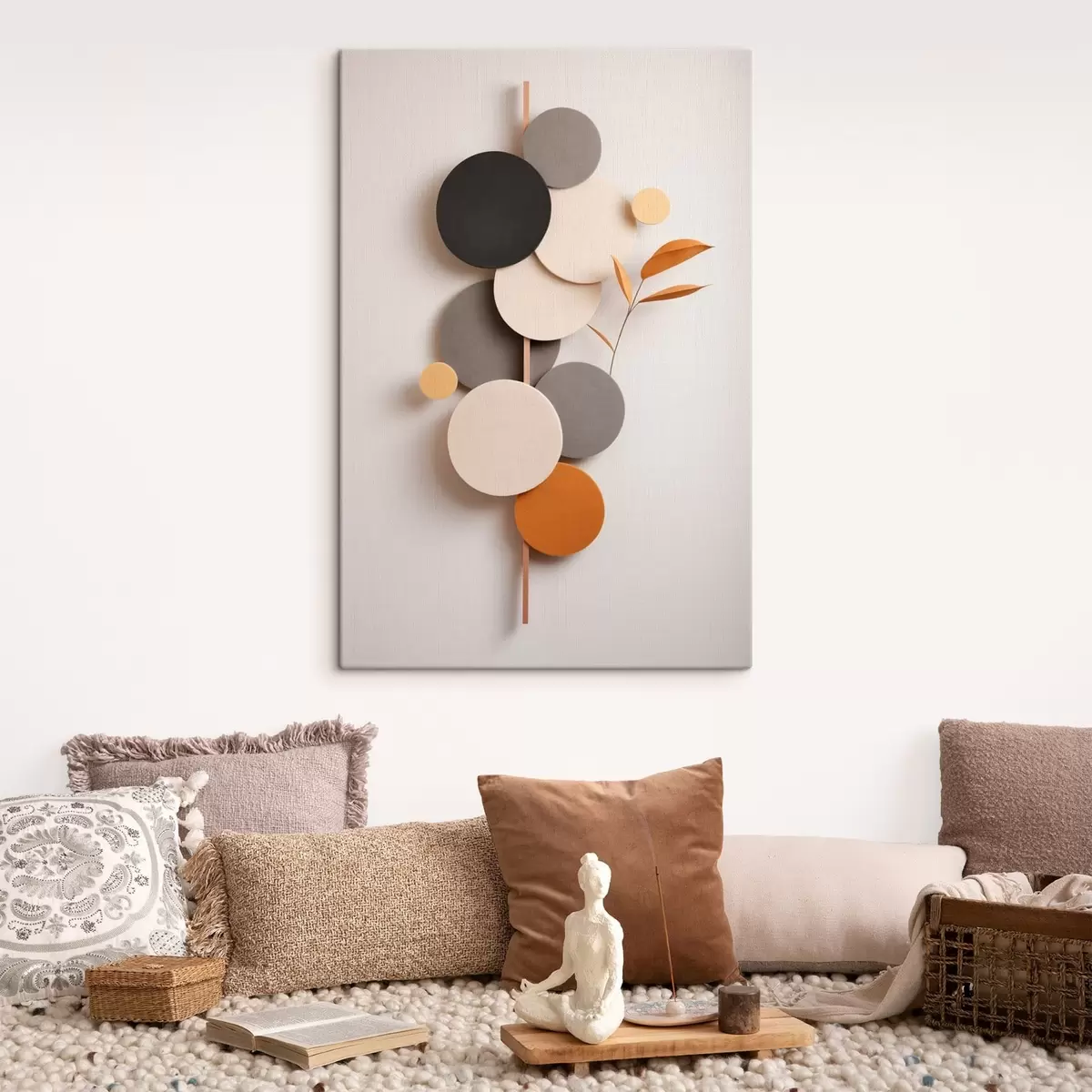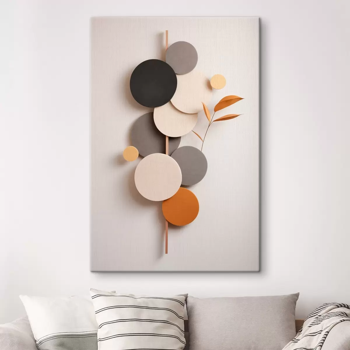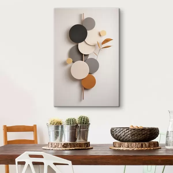 Gemälde Abstrakte Kreise mit Blättern in neutralen Farbtönen Art. s48602