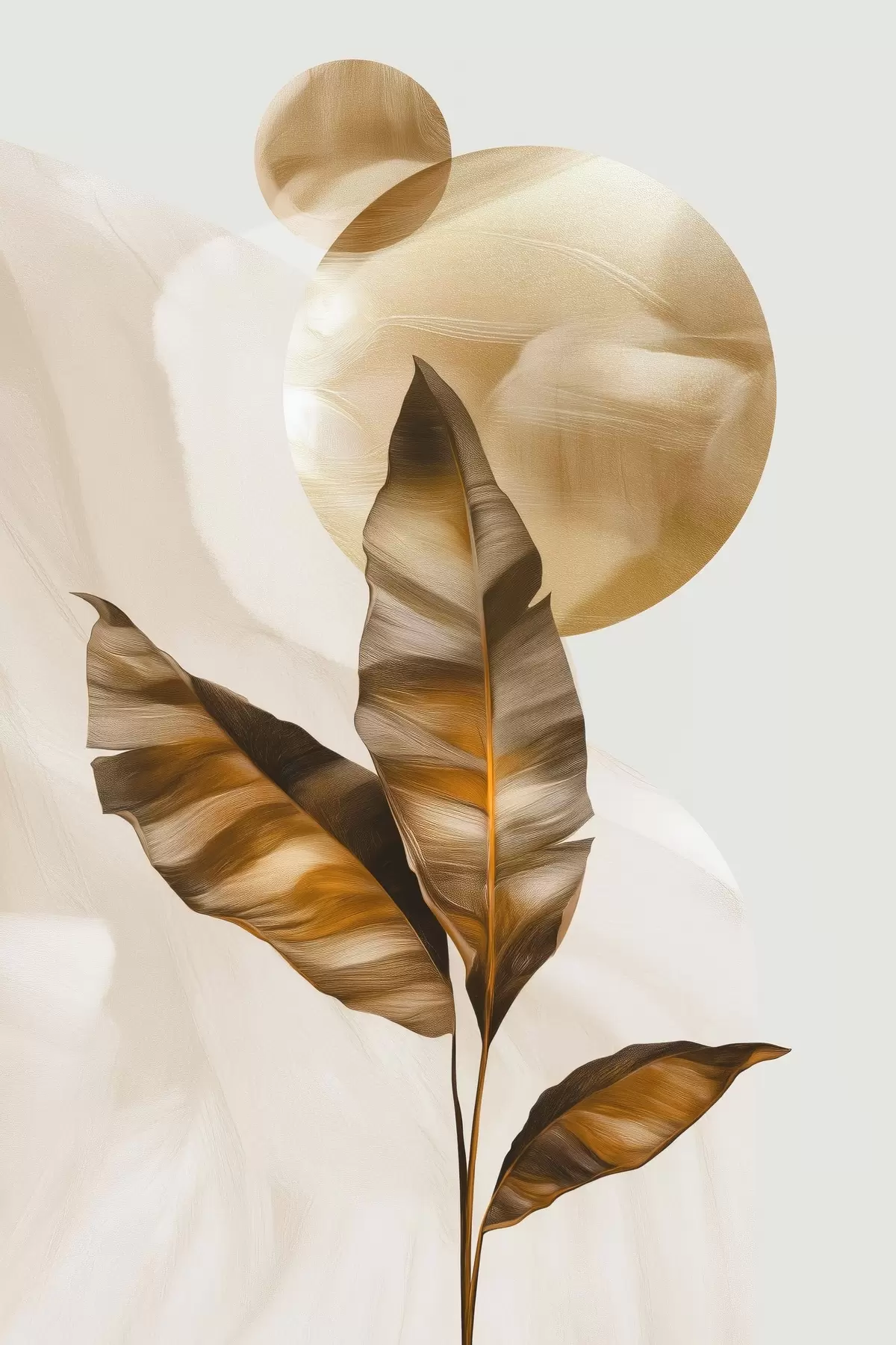 Gemälde Eine abstrakte Komposition aus Blättern und Kreisen Art. s48614
