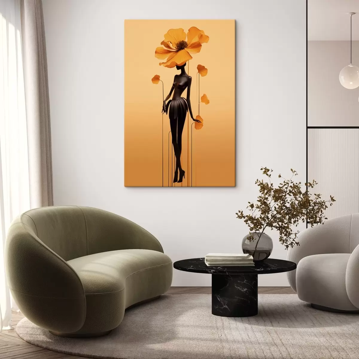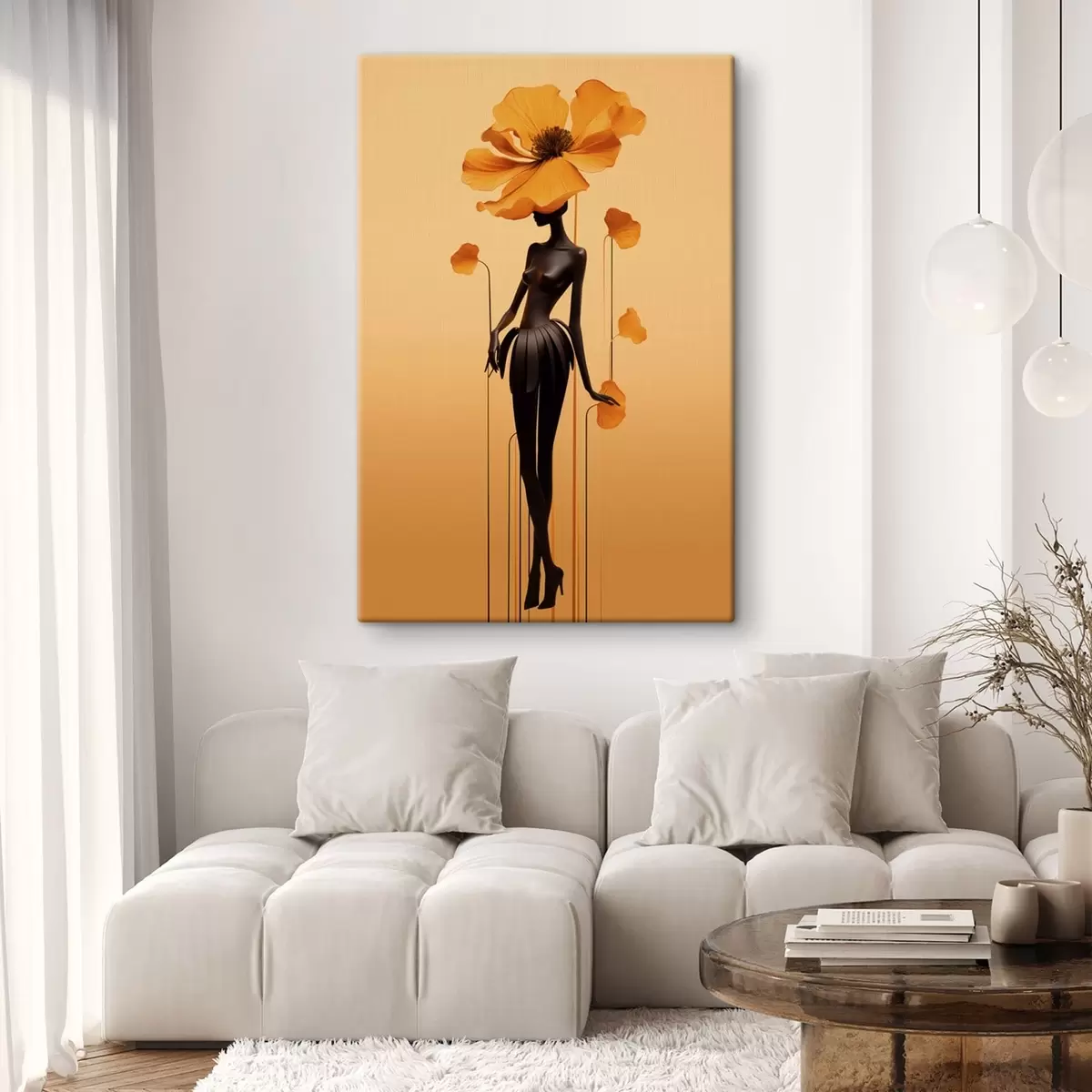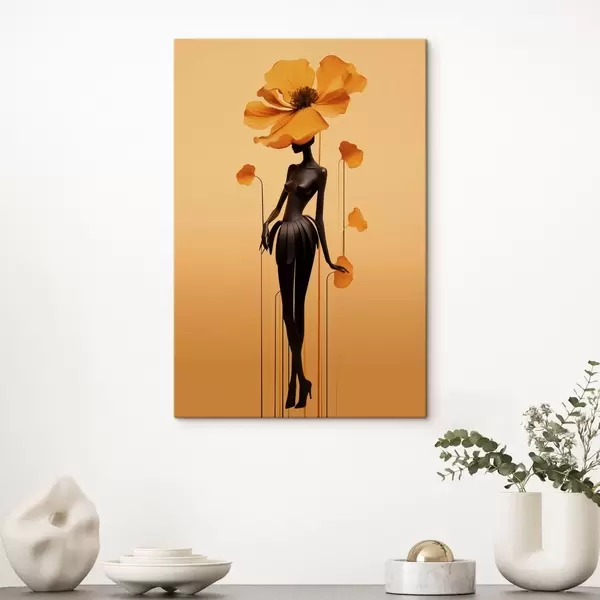 Gemälde Elegante Figur mit Blumen vor einem warmen Farbverlauf Art. s48619