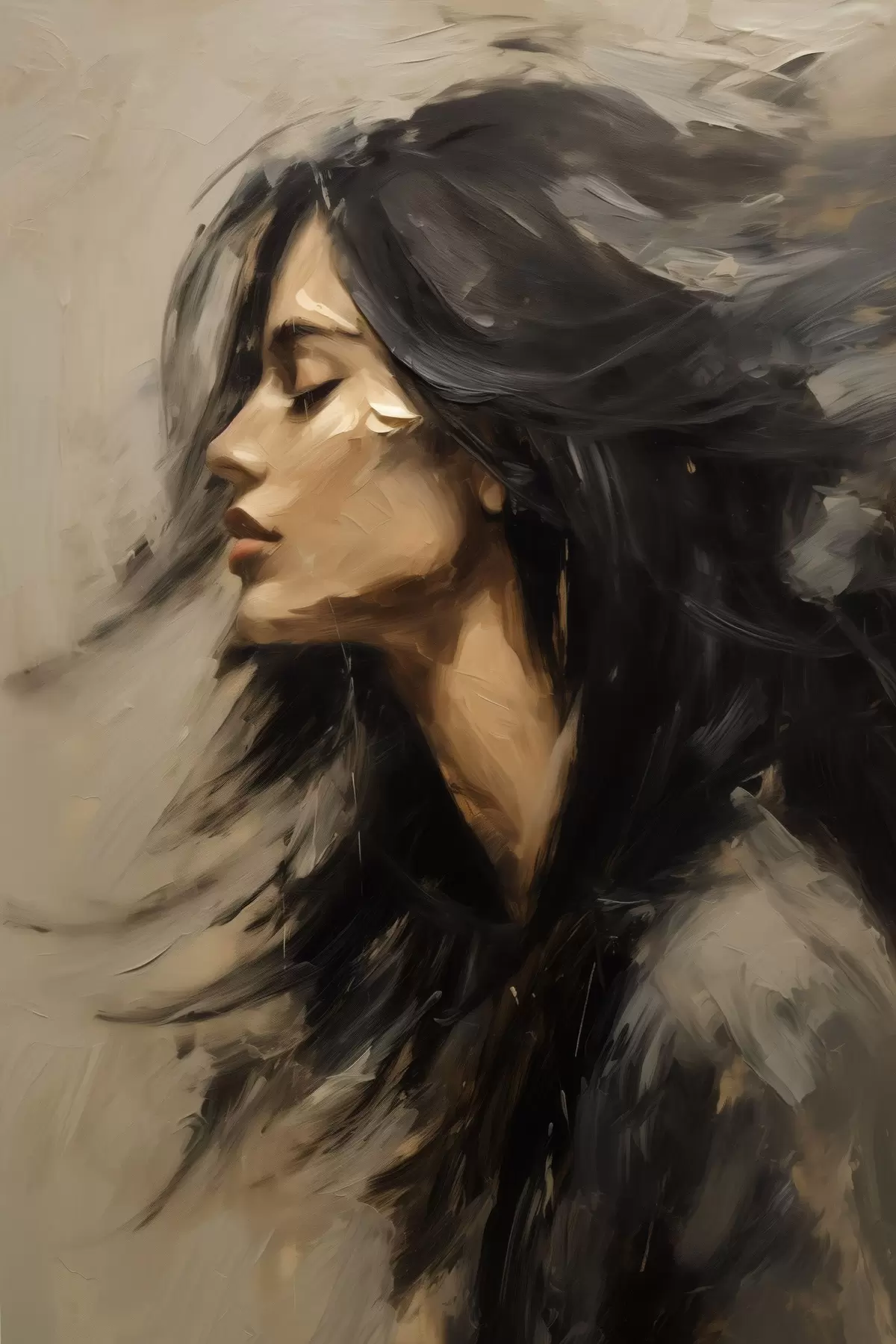 Gemälde Frauenporträt mit wallendem Haar im malerischen Stil Art. s48622