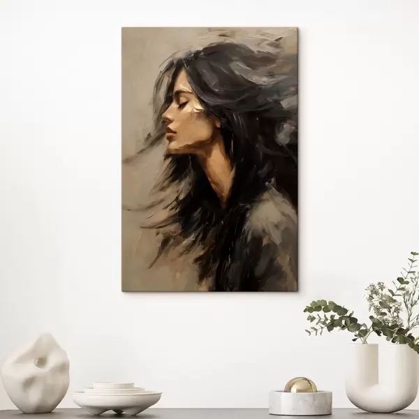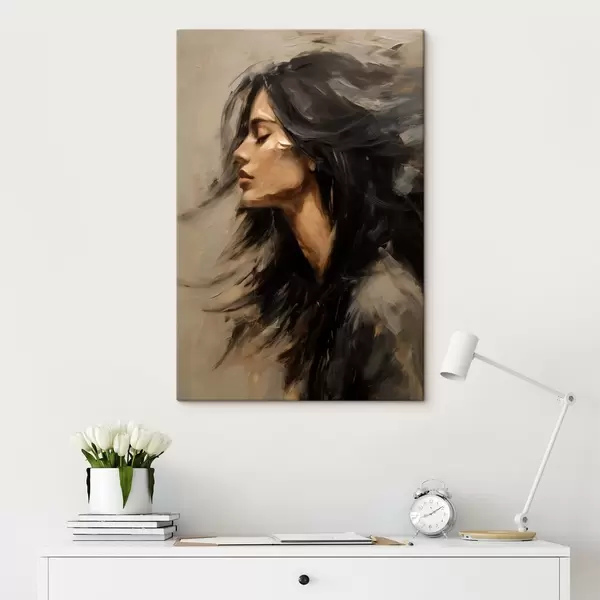 Fototapete Frauenporträt mit wallendem Haar im malerischen Stil s48622