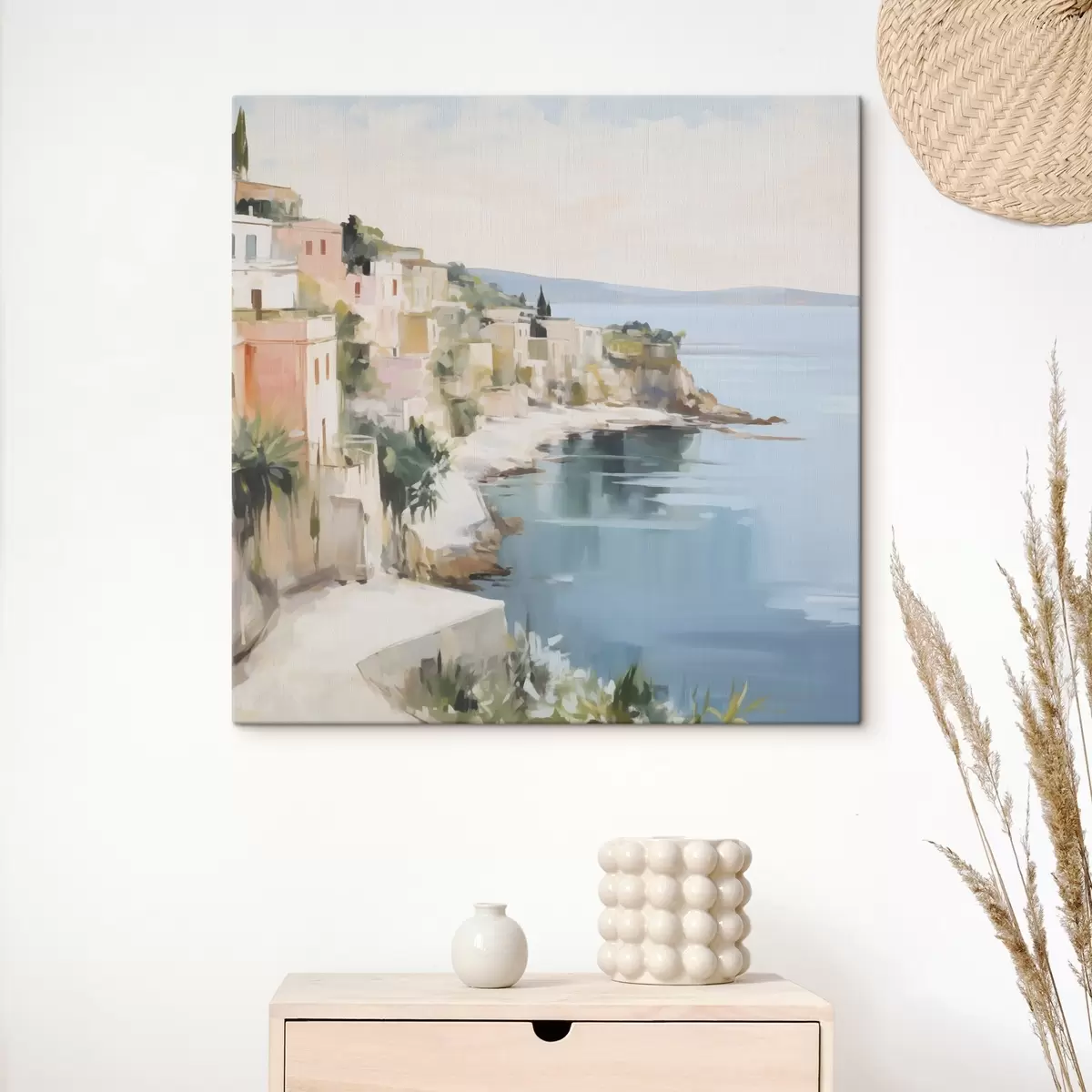 Fototapete Landschaft einer Küstenstadt – Nachahmung eines Gemäldes s48675