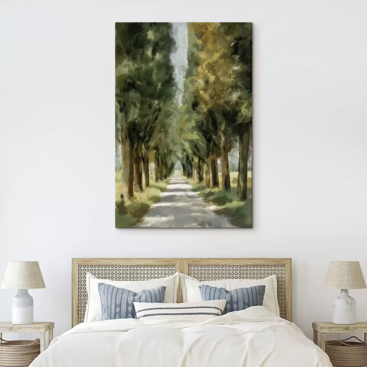 Drei Materialtypen stehen zur Verfügung: Economic Canvas - ein dichtes und haltbares Material für den Digitaldruck, identisch mit Malerleinwand, wasserfeste Oberfläche, realistische Wiedergabe von Details, mittelkörniges Material. Premium Canvas - die Textur ähnelt der einer Malerleinwand (verwobene kleine Fäden). Weiche, detaillierte Wiedergabe des Bildes auf einer matten Oberfläche. Eco-Premium - hochwertiges Gewebe aus 100% Baumwolle. Dank der natürlichen Baumwollfasern ist das Material langlebig und verschleißfest. Hervorragende Farbwiedergabe und Detailtreue.