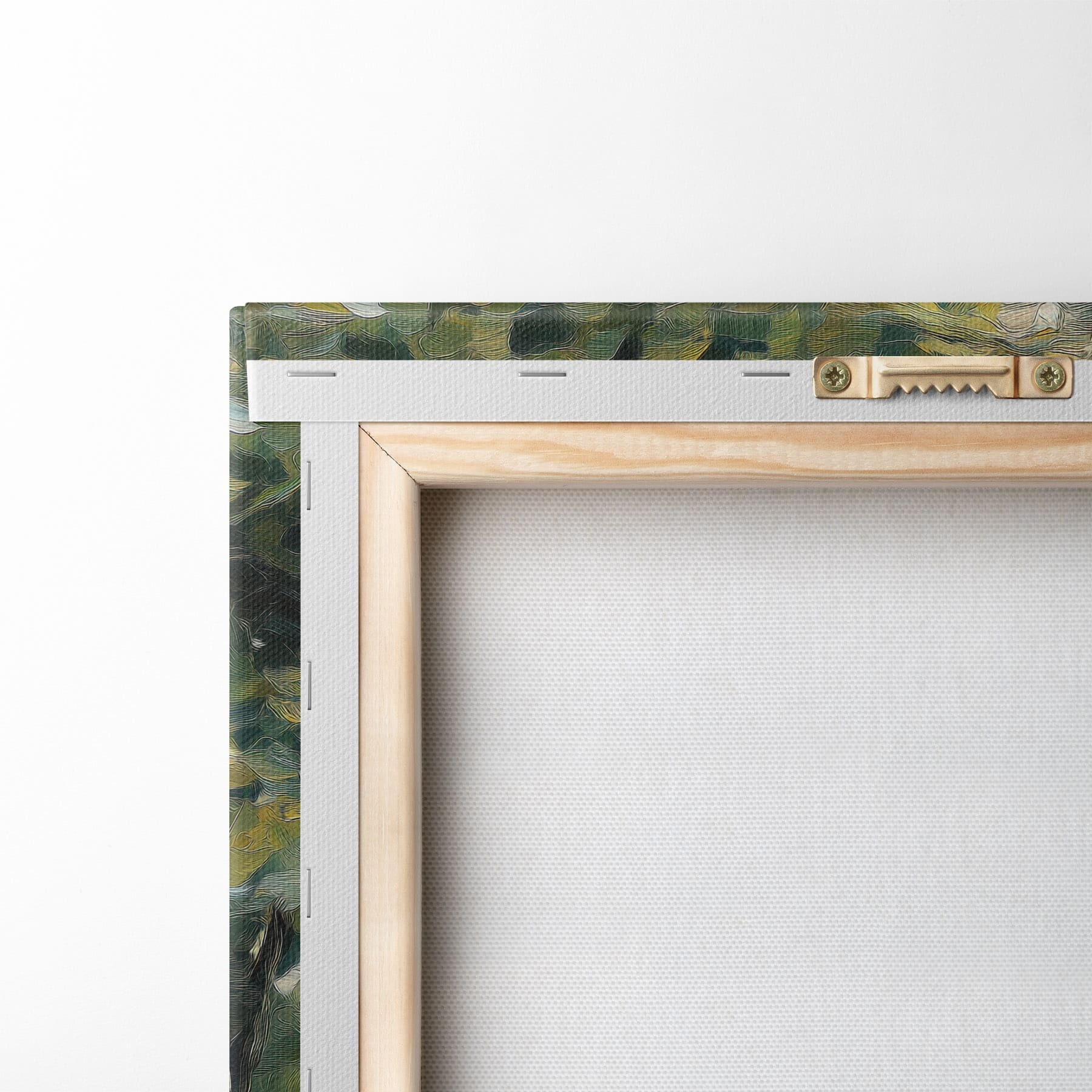 Um die Leinwand auf Keilrahmen zu spannen, ohne das Bild zu beschädigen, verwenden wir ein gespiegeltes Bild.