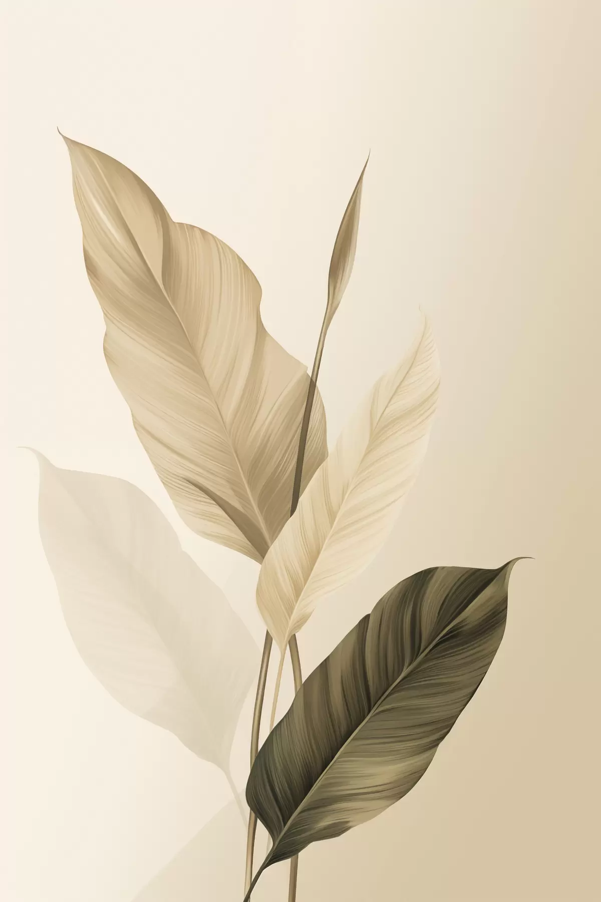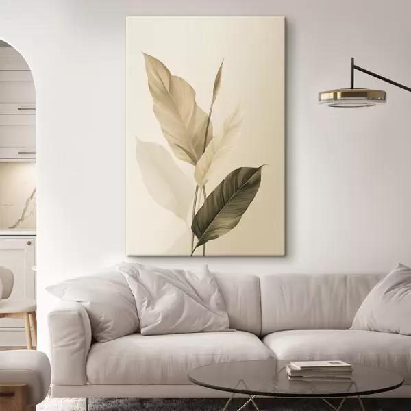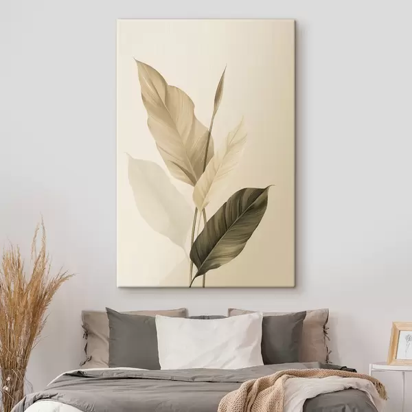 Gemälde Große tropische Blätter in Beige- und Brauntönen, heller Hintergrund Art. s48725