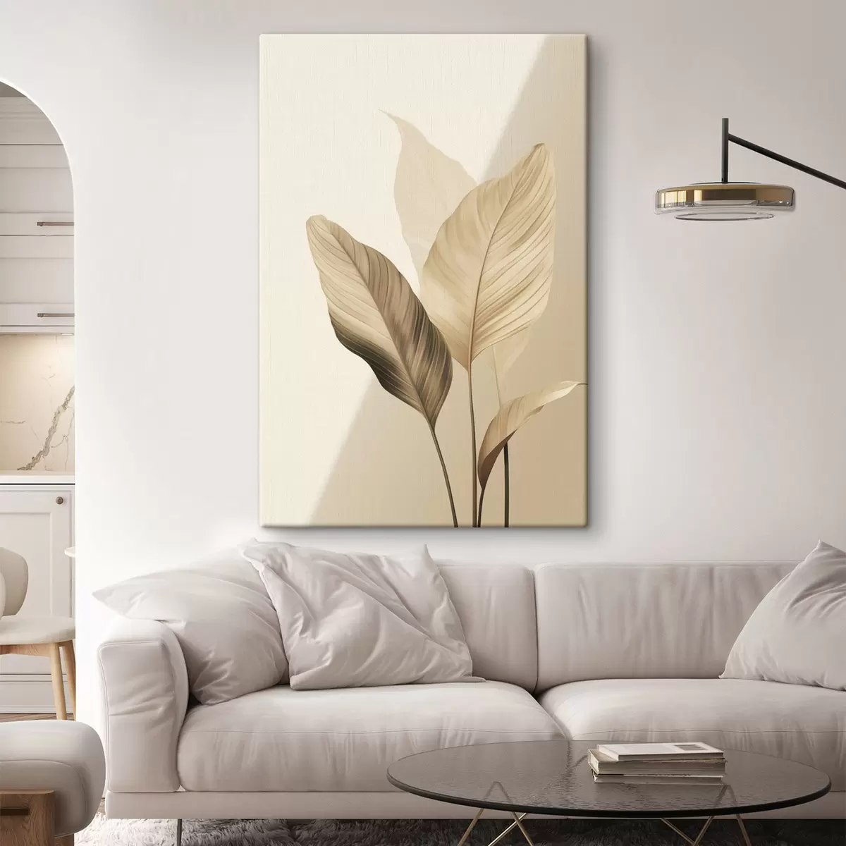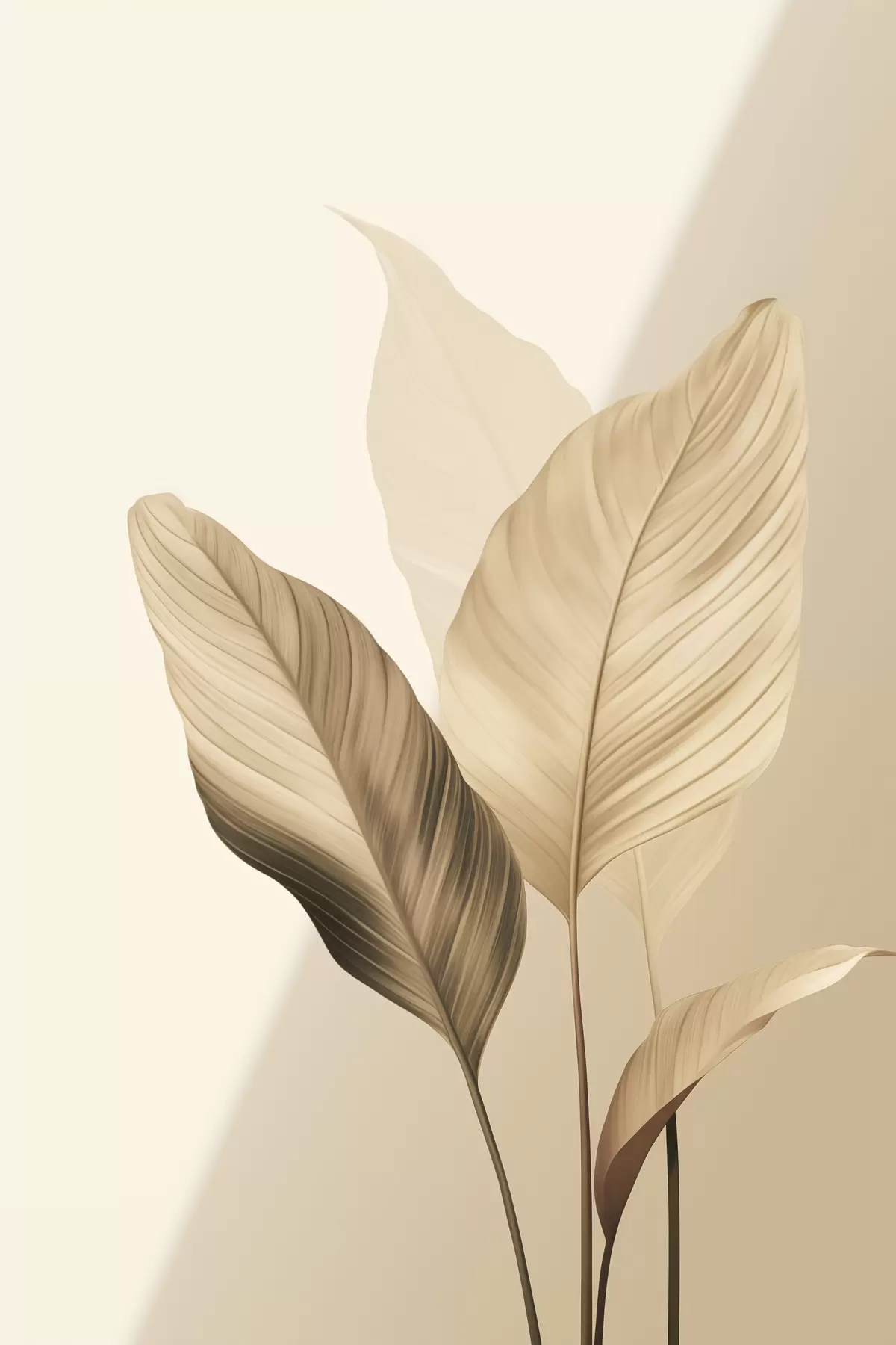 Gemälde Große tropische Blätter in Beige- und Brauntönen, heller Hintergrund Art. s48726