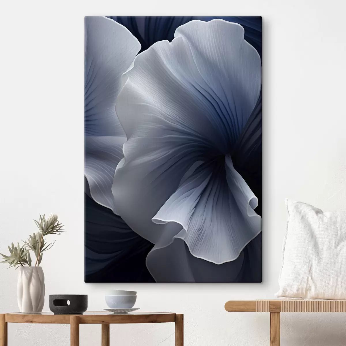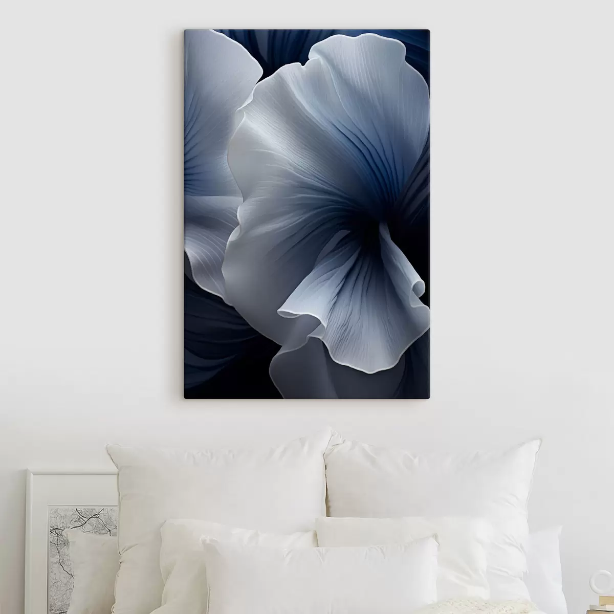 Gemälde Abstrakte blau-weiße Blütenblätter vor dunklem Hintergrund Art. s48731