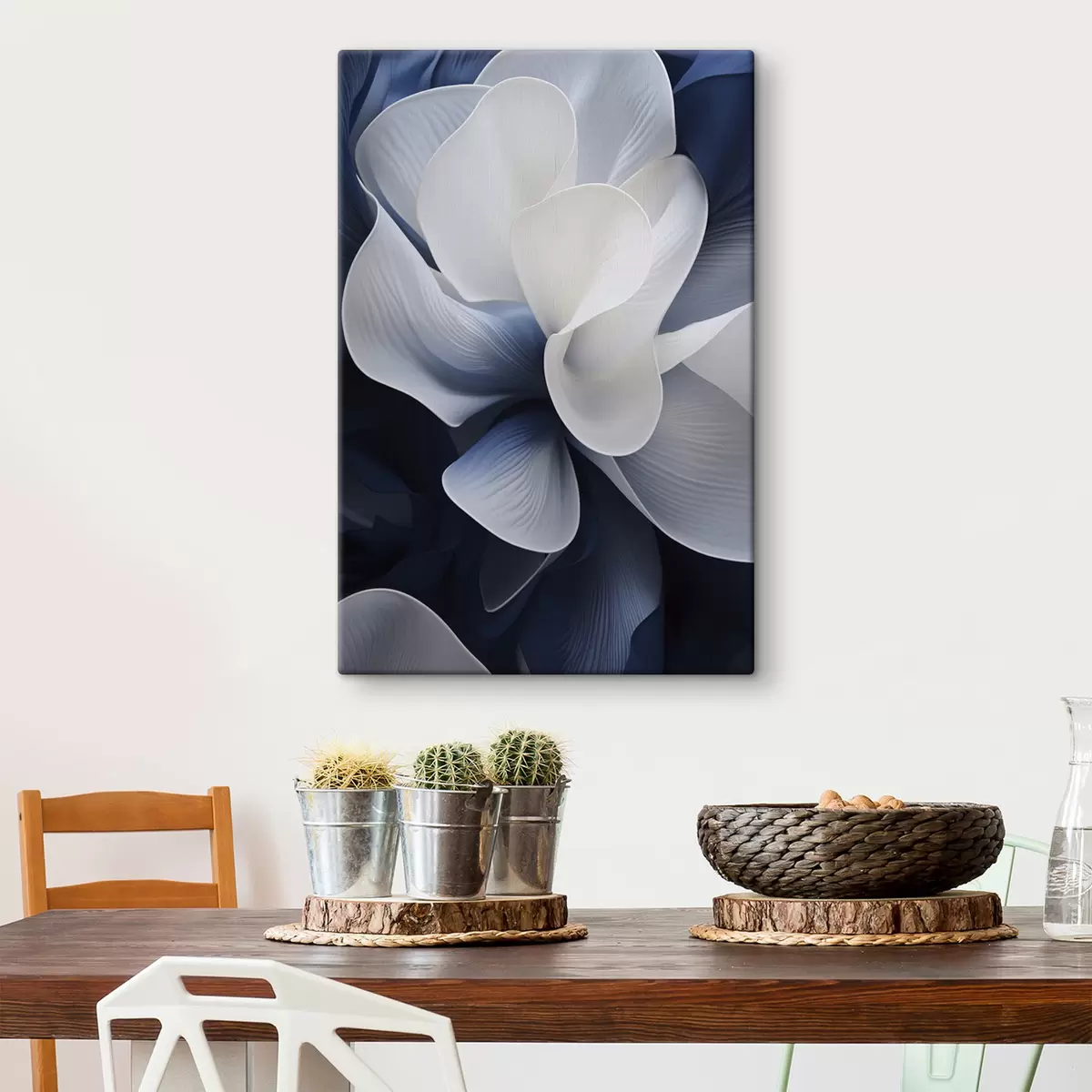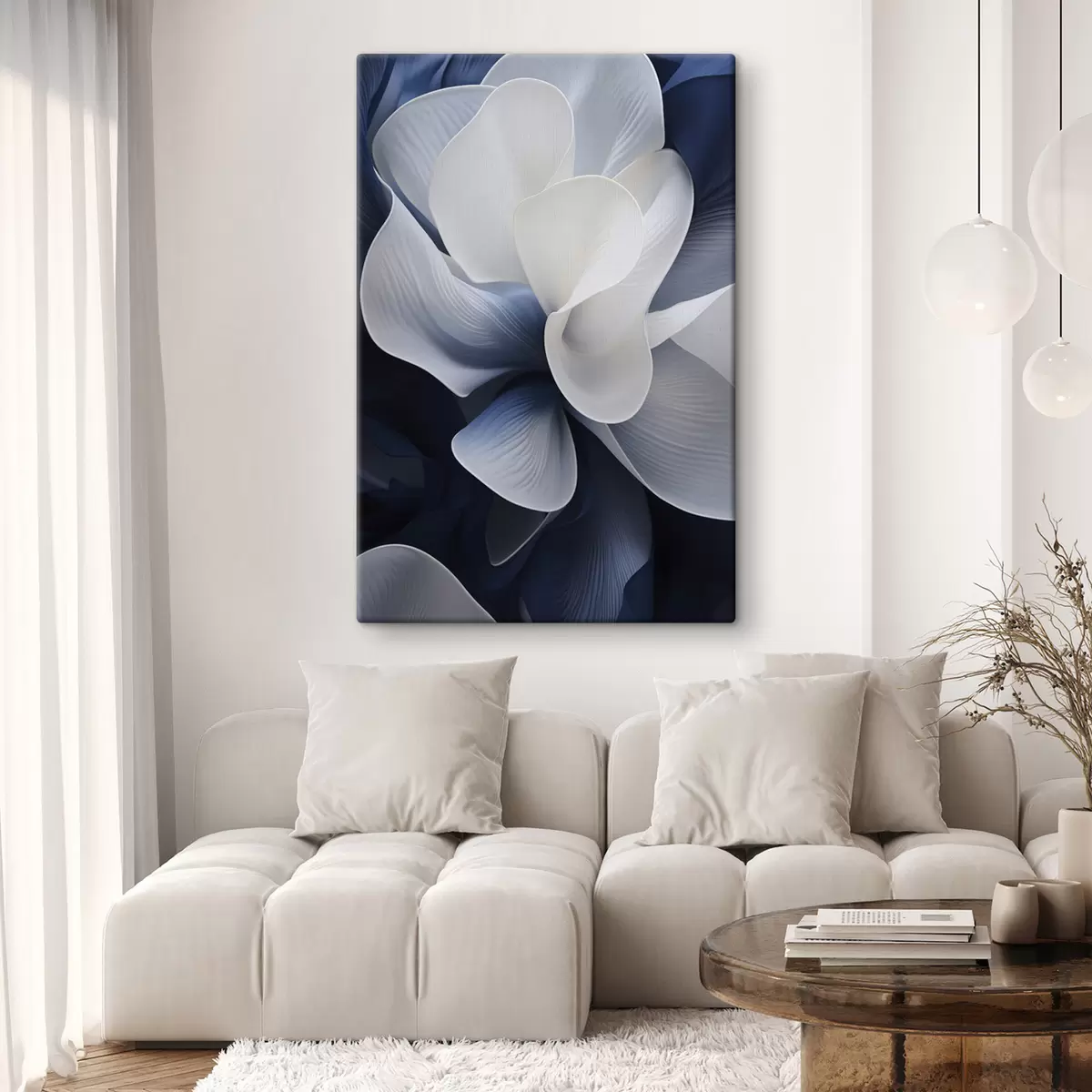 Gemälde Abstrakte blau-weiße Blütenblätter vor dunklem Hintergrund Art. s48732