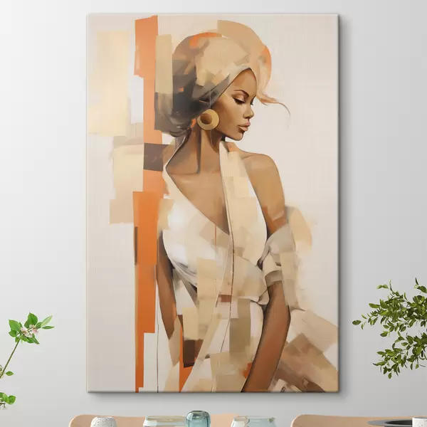 Gemälde Abstraktes Frauenporträt mit orangefarbenen und beigen Formen Art. s48735