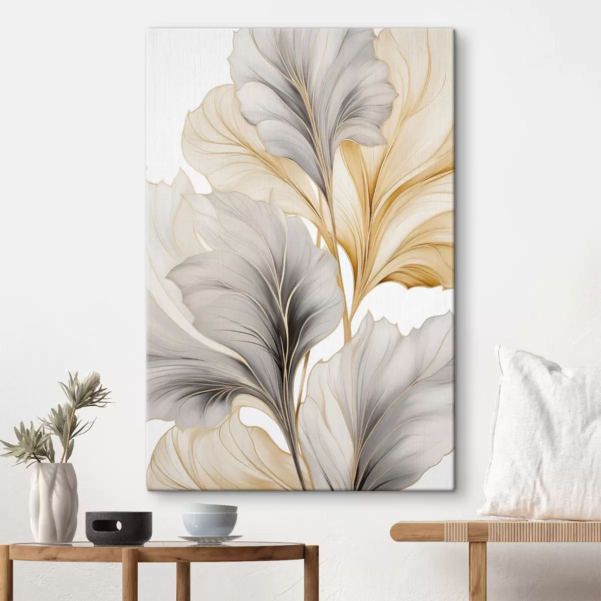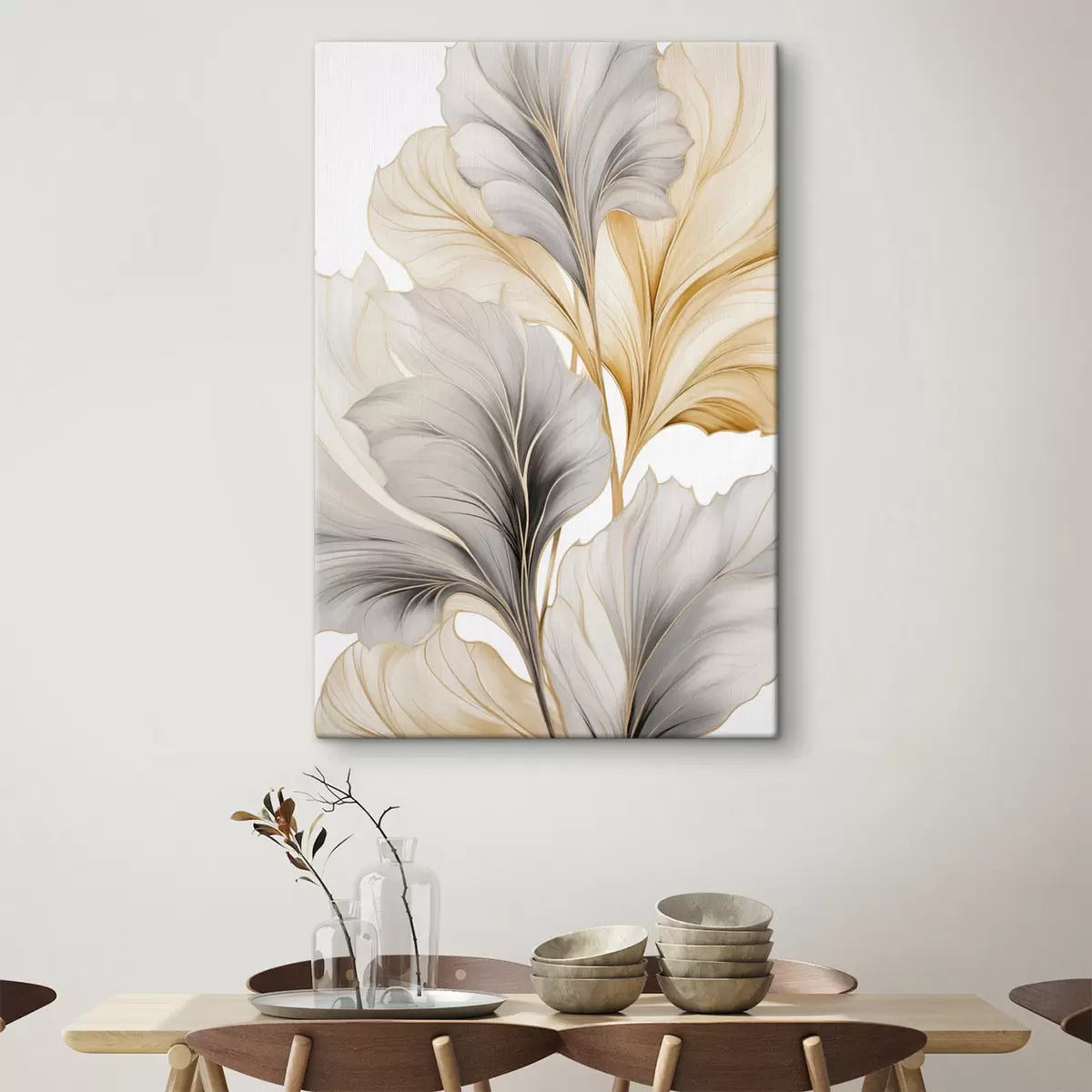 Gemälde Große, durchscheinende Blätter in Grau- und Gelbtönen Art. s48745