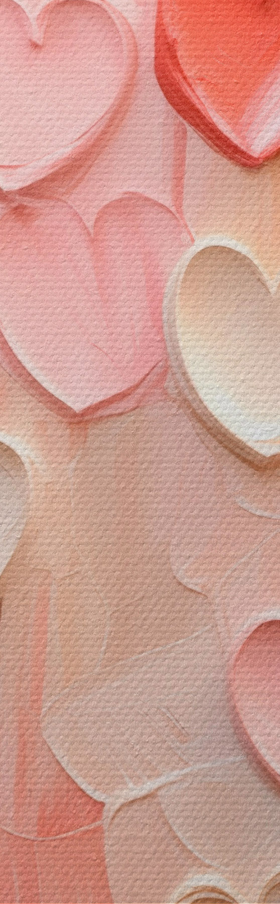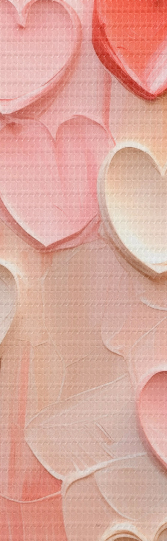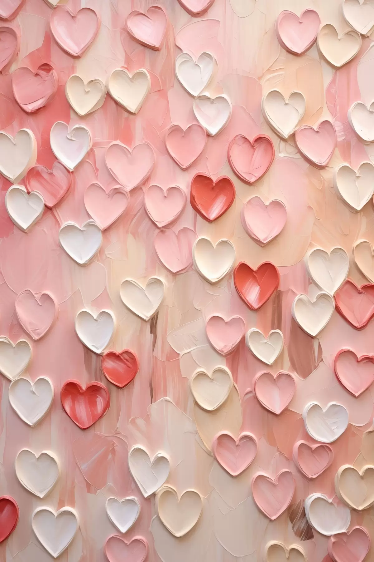 Fototapete Herzen in verschiedenen Pfirsich- und Rosatönen in einem strukturierten, gemalten Stil s48752
