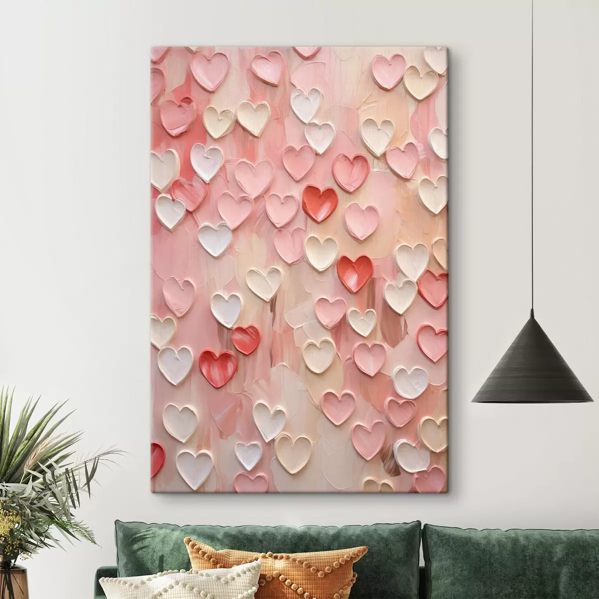 Gemälde Herzen in verschiedenen Pfirsich- und Rosatönen in einem strukturierten, gemalten Stil Art. s48752