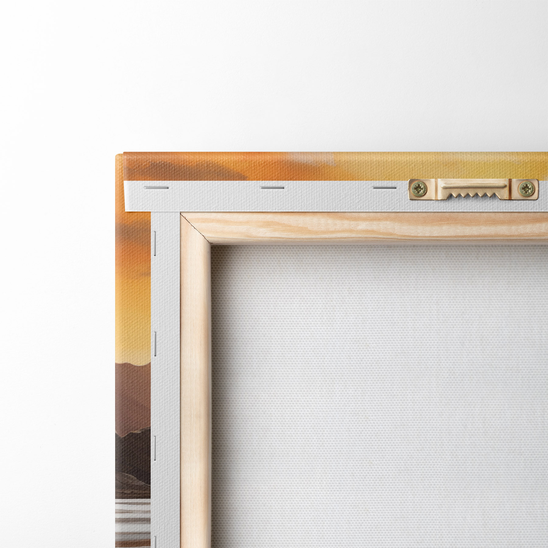 Sie können das Bild an Schrauben aufhängen. Dazu legen wir unseren Bildern Halterungen bei, mit denen Sie das Bild bequem aufhängen können.