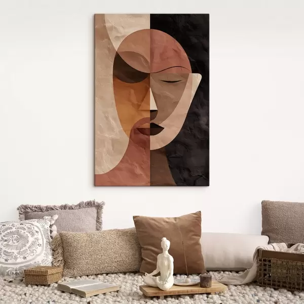 Gemälde ein abstraktes Gesicht in Kaffeetönen Art. s48777
