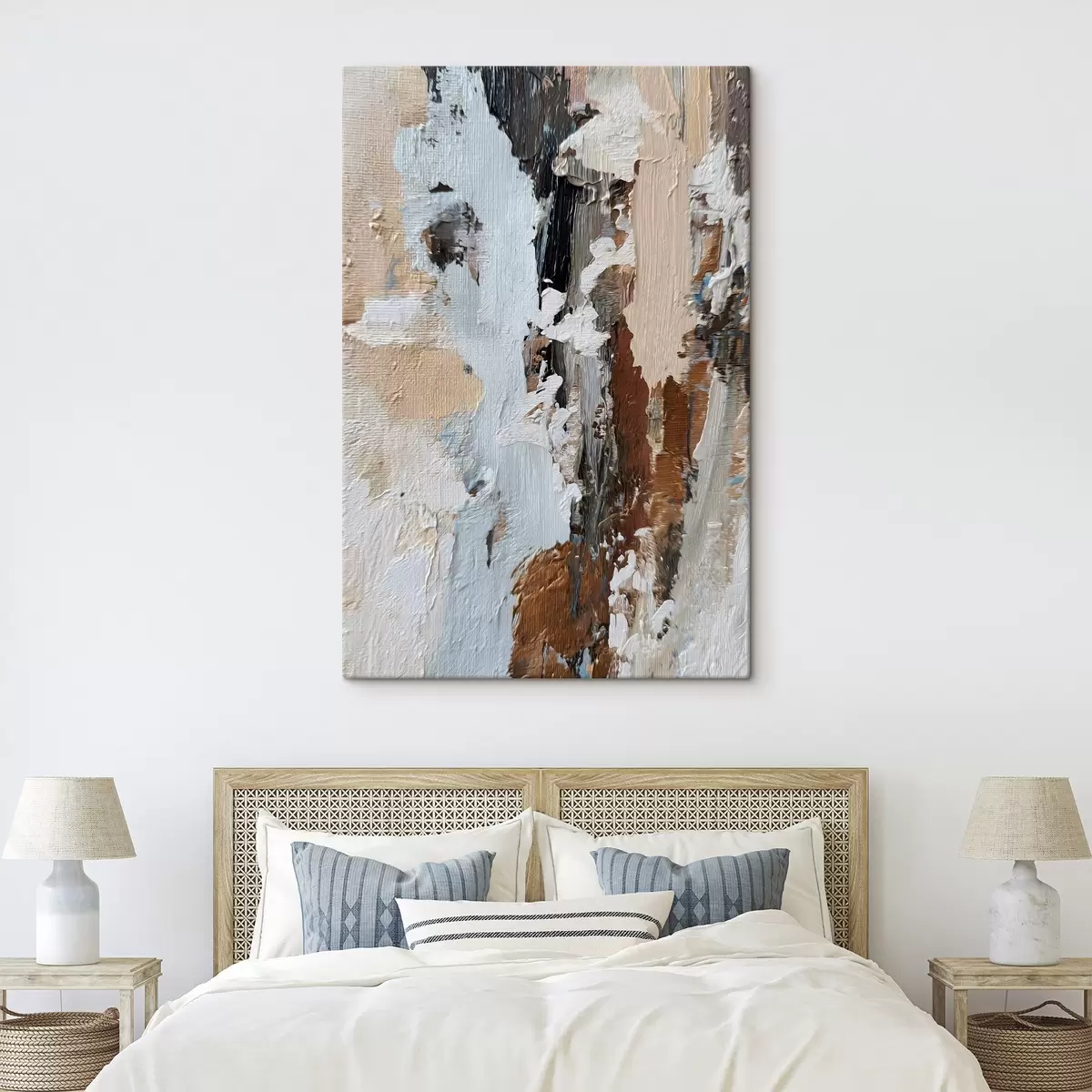 Drei Materialtypen stehen zur Verfügung: Economic Canvas - ein dichtes und haltbares Material für den Digitaldruck, identisch mit Malerleinwand, wasserfeste Oberfläche, realistische Wiedergabe von Details, mittelkörniges Material. Premium Canvas - die Textur ähnelt der einer Malerleinwand (verwobene kleine Fäden). Weiche, detaillierte Wiedergabe des Bildes auf einer matten Oberfläche. Eco-Premium - hochwertiges Gewebe aus 100% Baumwolle. Dank der natürlichen Baumwollfasern ist das Material langlebig und verschleißfest. Hervorragende Farbwiedergabe und Detailtreue.