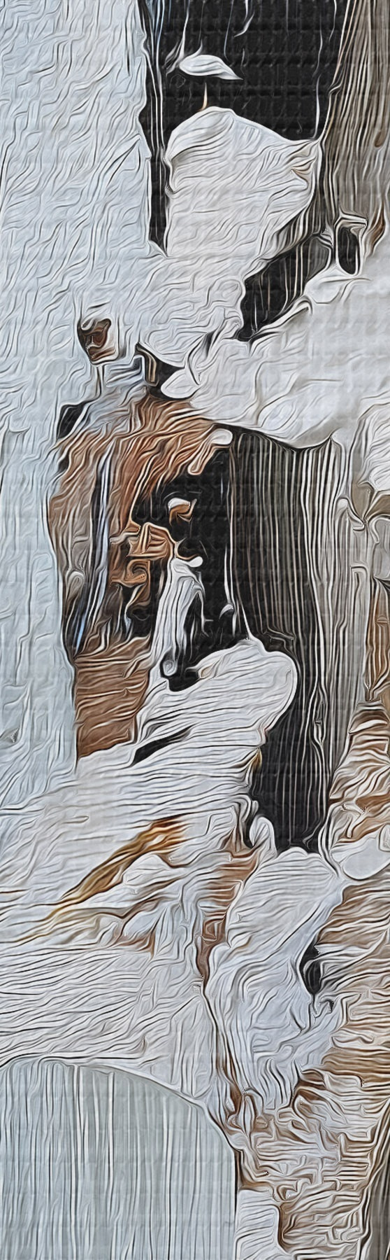 Um die Leinwand auf Keilrahmen zu spannen, ohne das Bild zu beschädigen, verwenden wir ein gespiegeltes Bild.