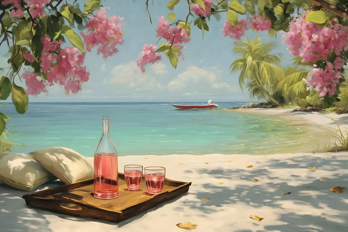 Gemälde ein azurblauer Strand und Sangria Art. s48793