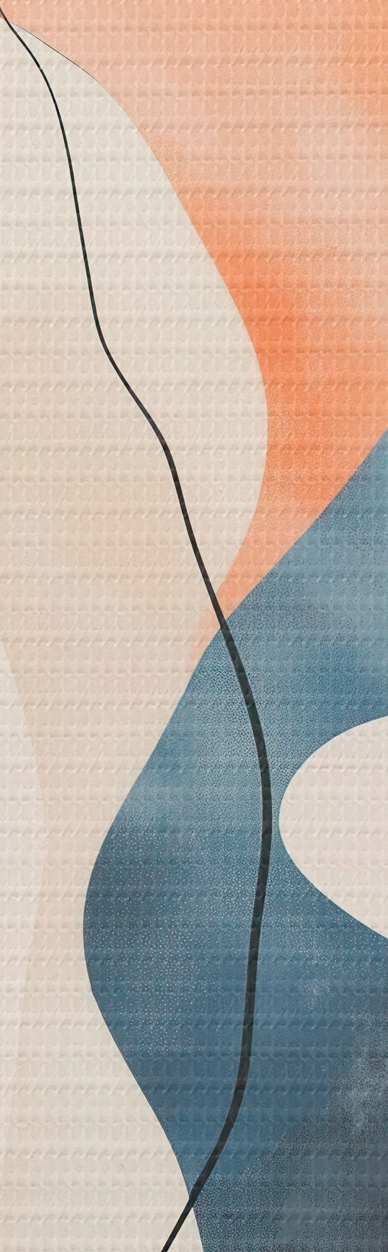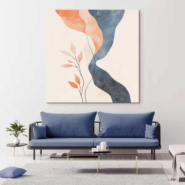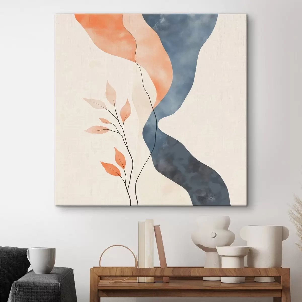 Fototapete Blumenarrangement mit fließenden Linien in Blau- und Orangetönen s48837