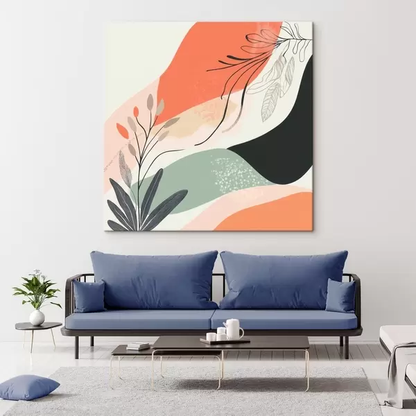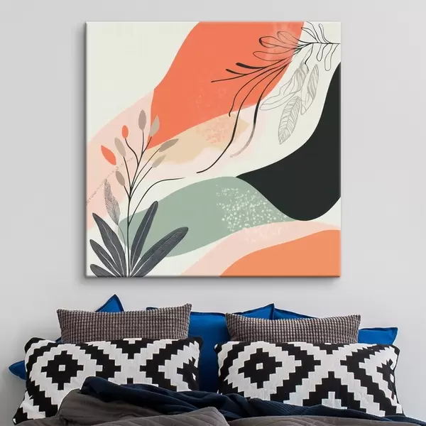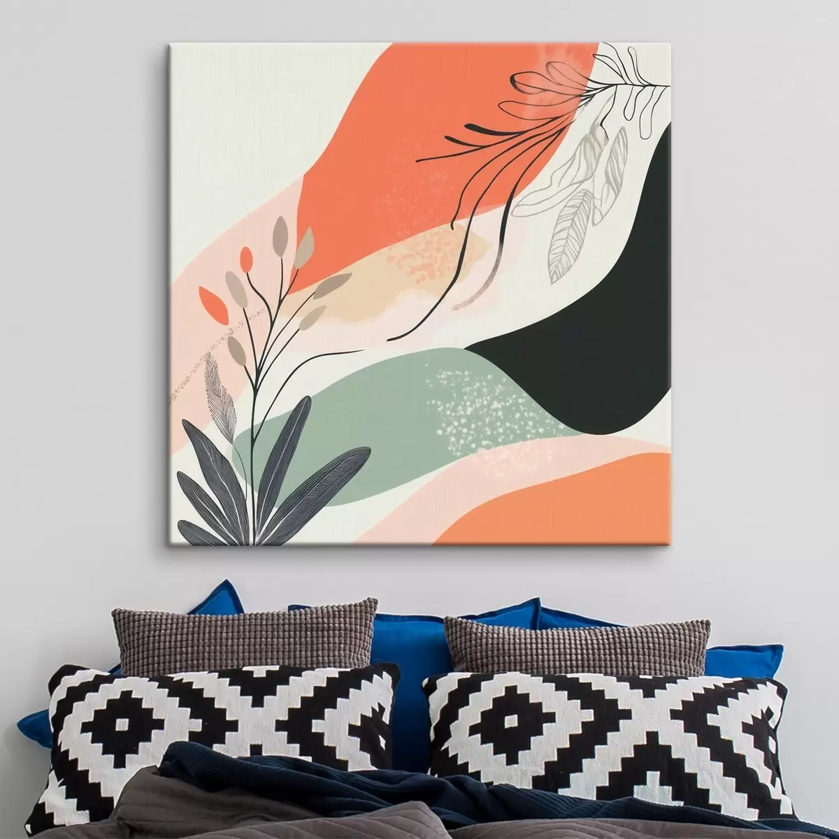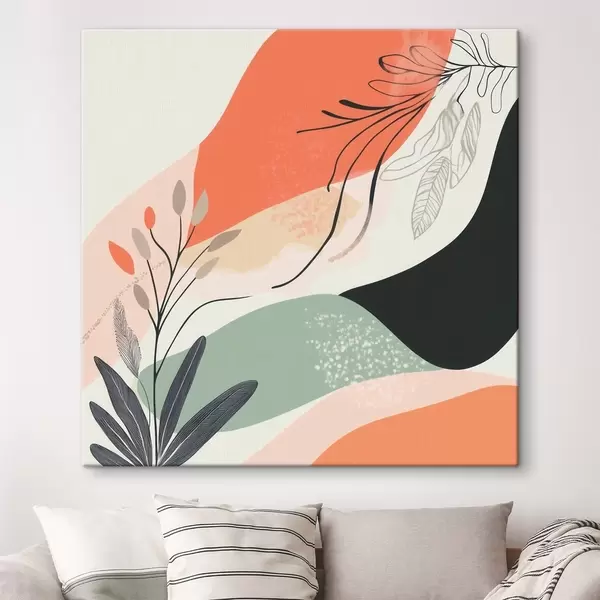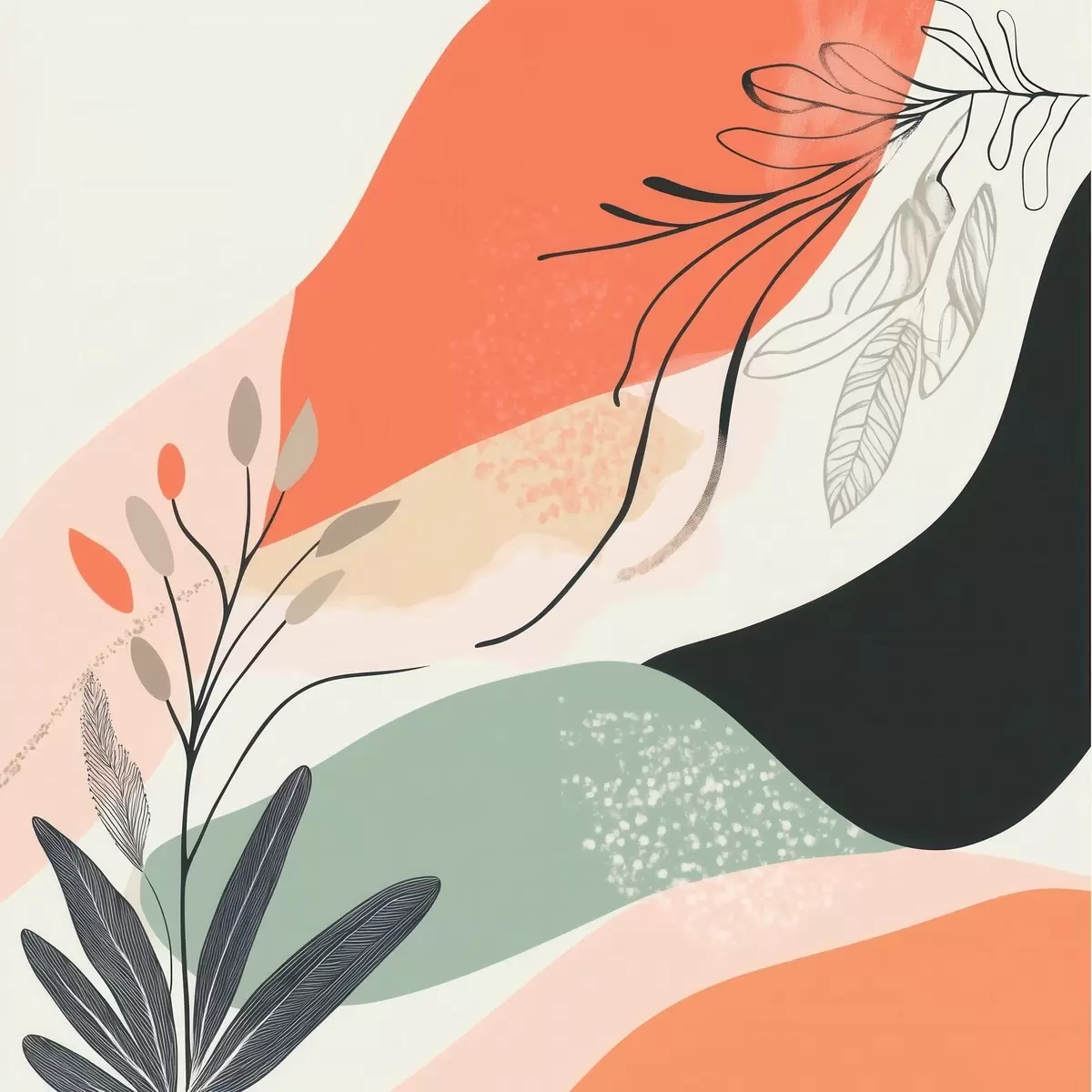Gemälde Stilisierte Pflanzenmotive vor einem Hintergrund aus Aquarellflecken Art. s48839