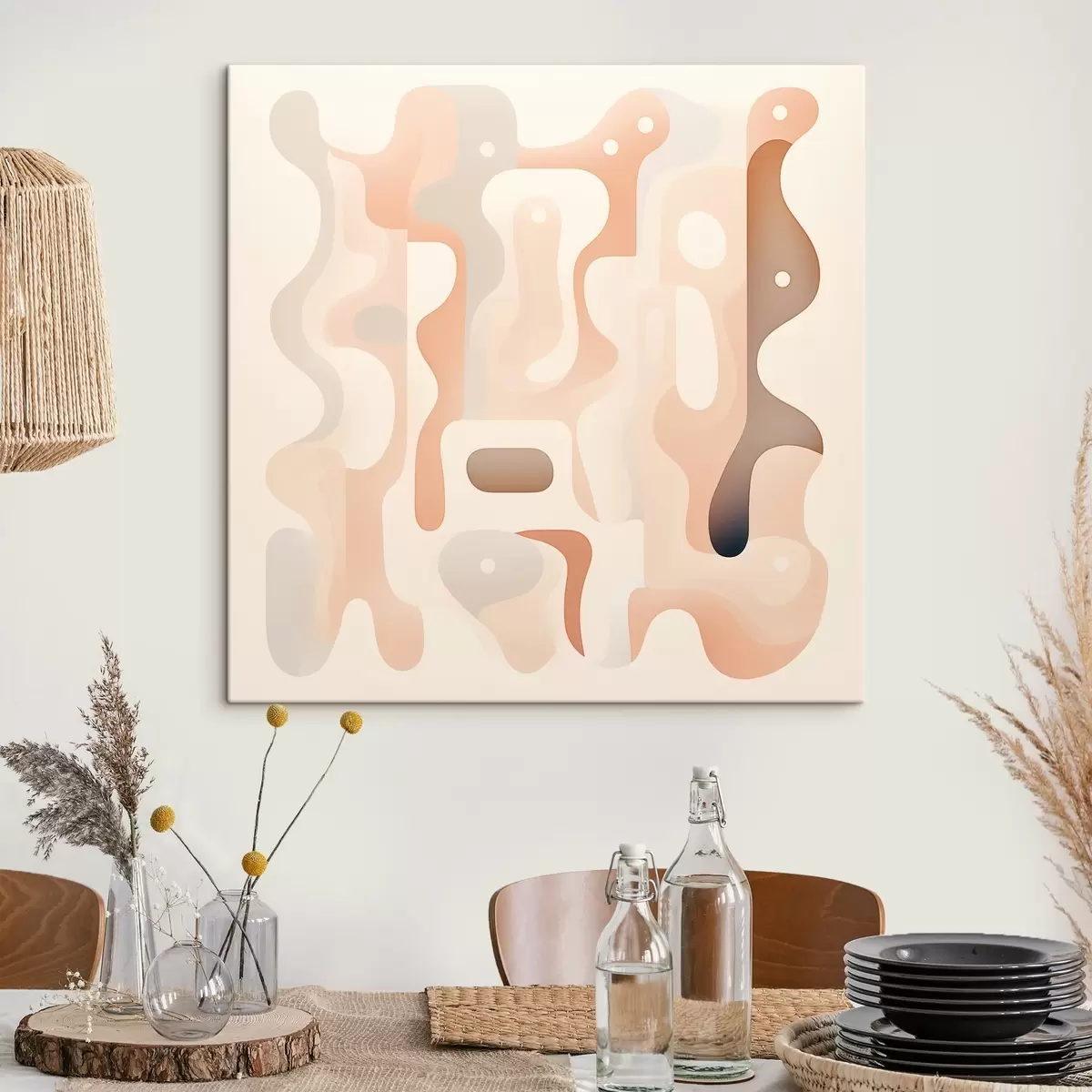 Gemälde Eine Harmonie aus geschwungenen Formen und einer natürlichen Farbpalette im Stil zeitgenössischer Kunstillustrationen Art. s48845