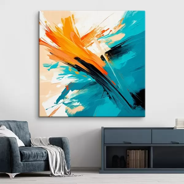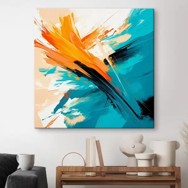 Gemälde Ein ausdrucksstarkes Bild in einer Farbpalette aus Türkis und Terrakotta, gehalten in einem zeitgenössischen Malstil Art. s48855