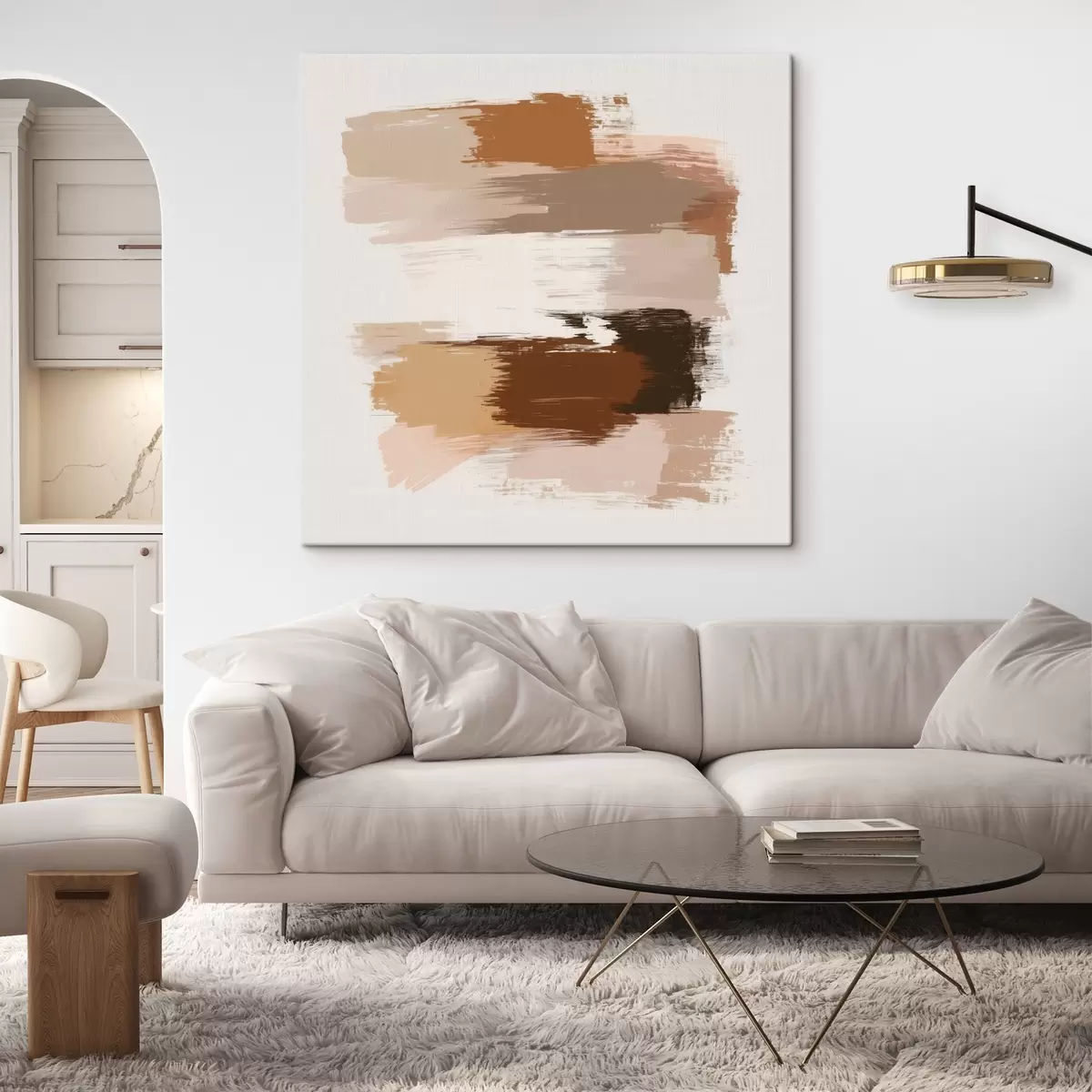 Gemälde Minimalistische Szene mit horizontalen Pinselstrichen in Kaffee- und Terrakottatönen Art. s48858