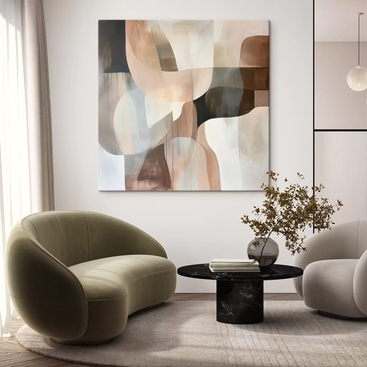 Gemälde Abstrakte Komposition in einer warmen Beige-Korallen-Farbpalette Art. s48859