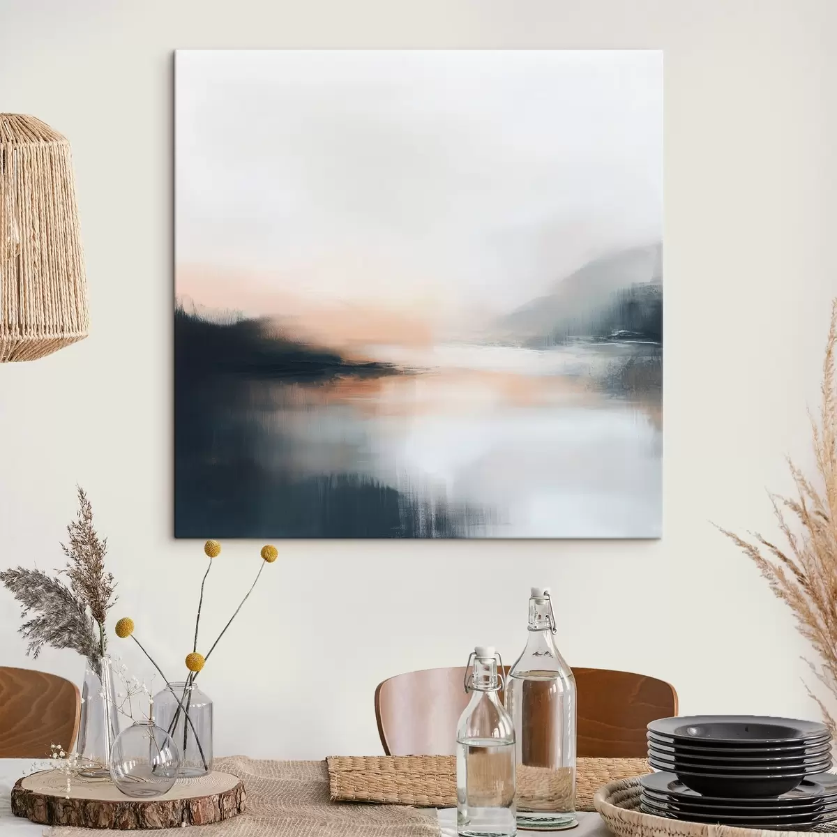 Gemälde Abstrakte, neblige Landschaft in einer warmen Beige-Korallen-Farbpalette Art. s48861