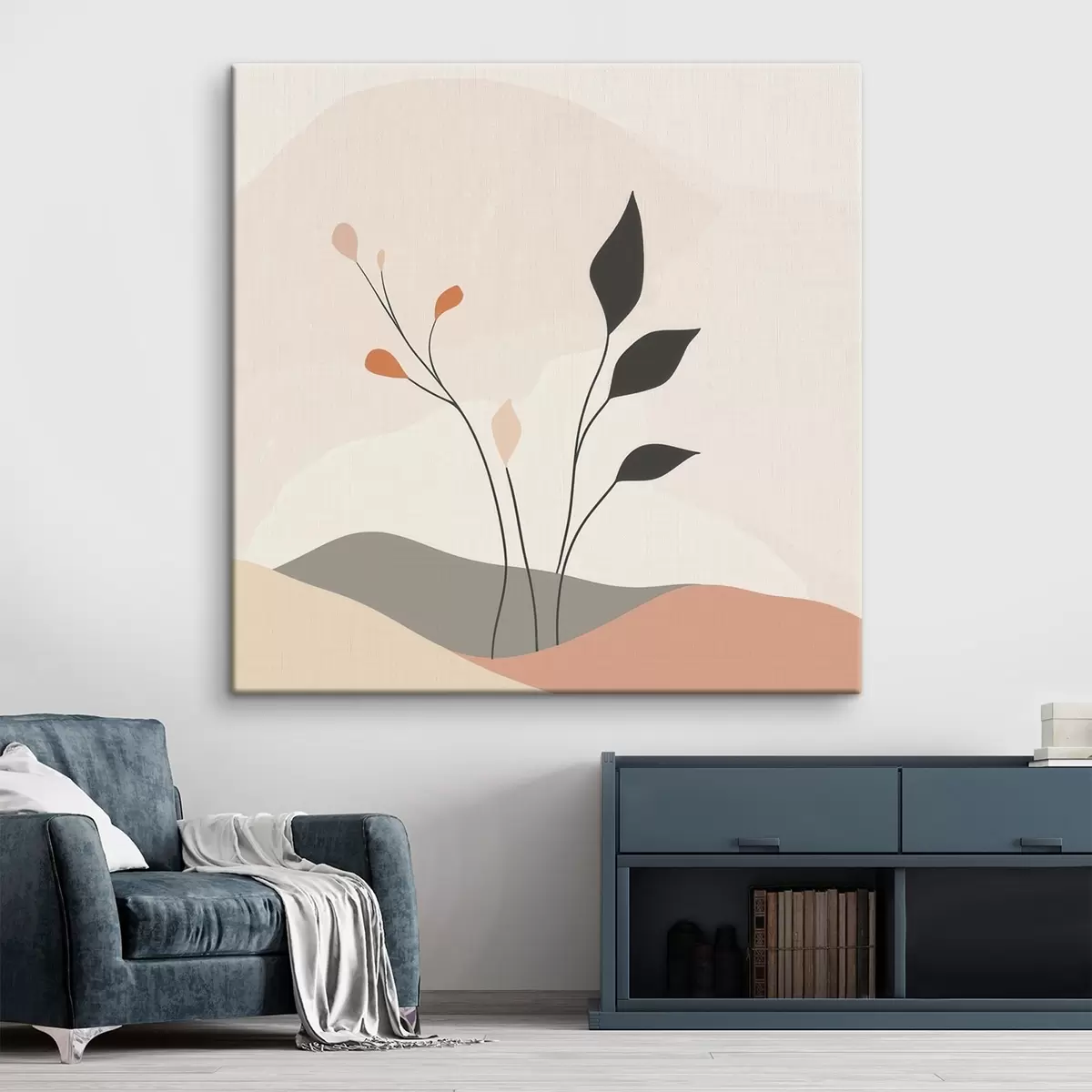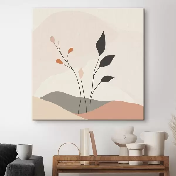 Fototapete Lakonische Szene mit Pflanzenmotiven und organischen Formen im Stil der zeitgenössischen Kunst s48874