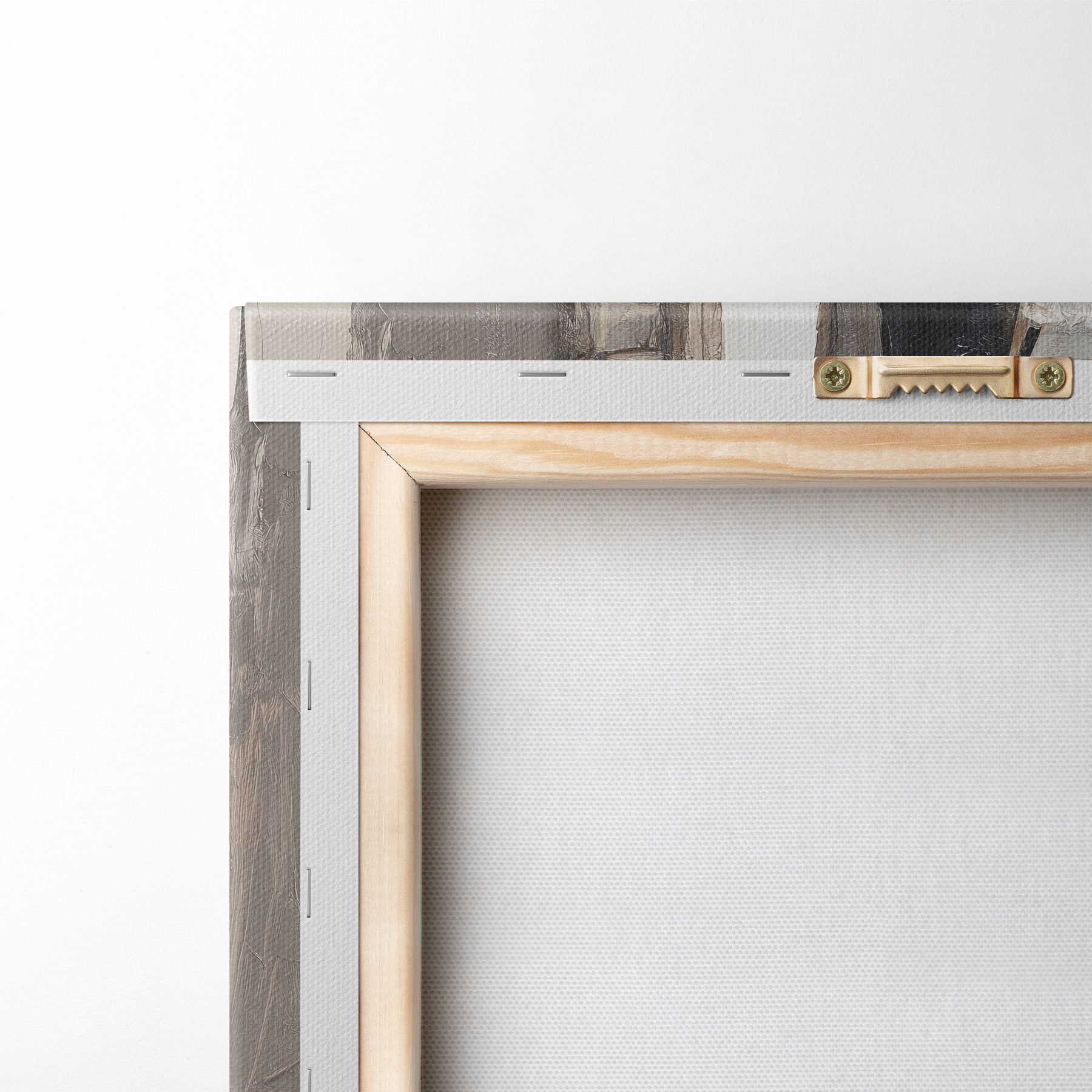 Um die Leinwand auf Keilrahmen zu spannen, ohne das Bild zu beschädigen, verwenden wir ein gespiegeltes Bild.