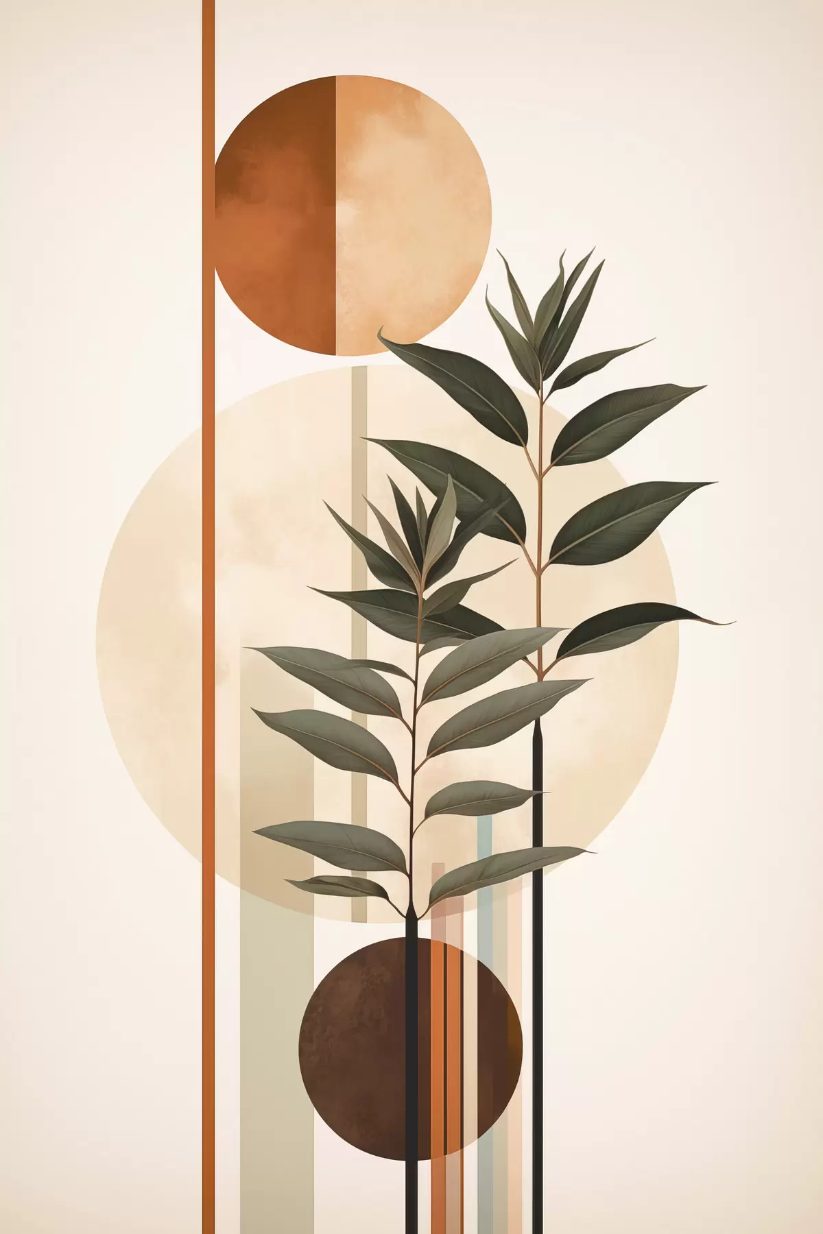 Fototapete Abstrakte Pflanzen mit Kreisen und Linien s48928