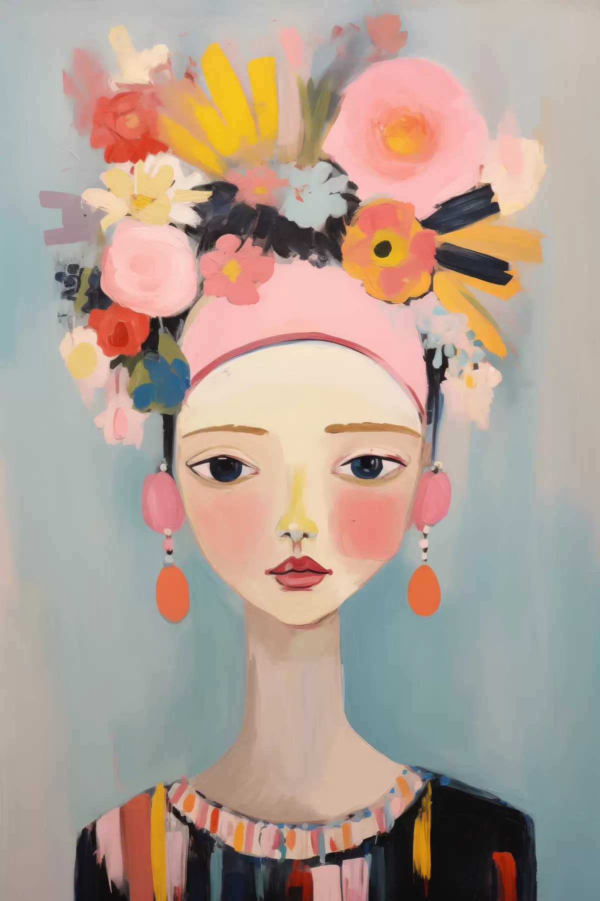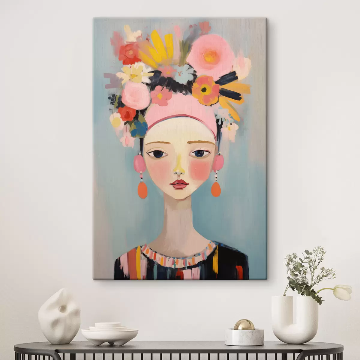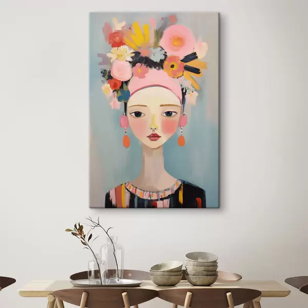 Gemälde Porträt einer Frau mit Blumen im Haar, im abstrakten Stil Art. s48936