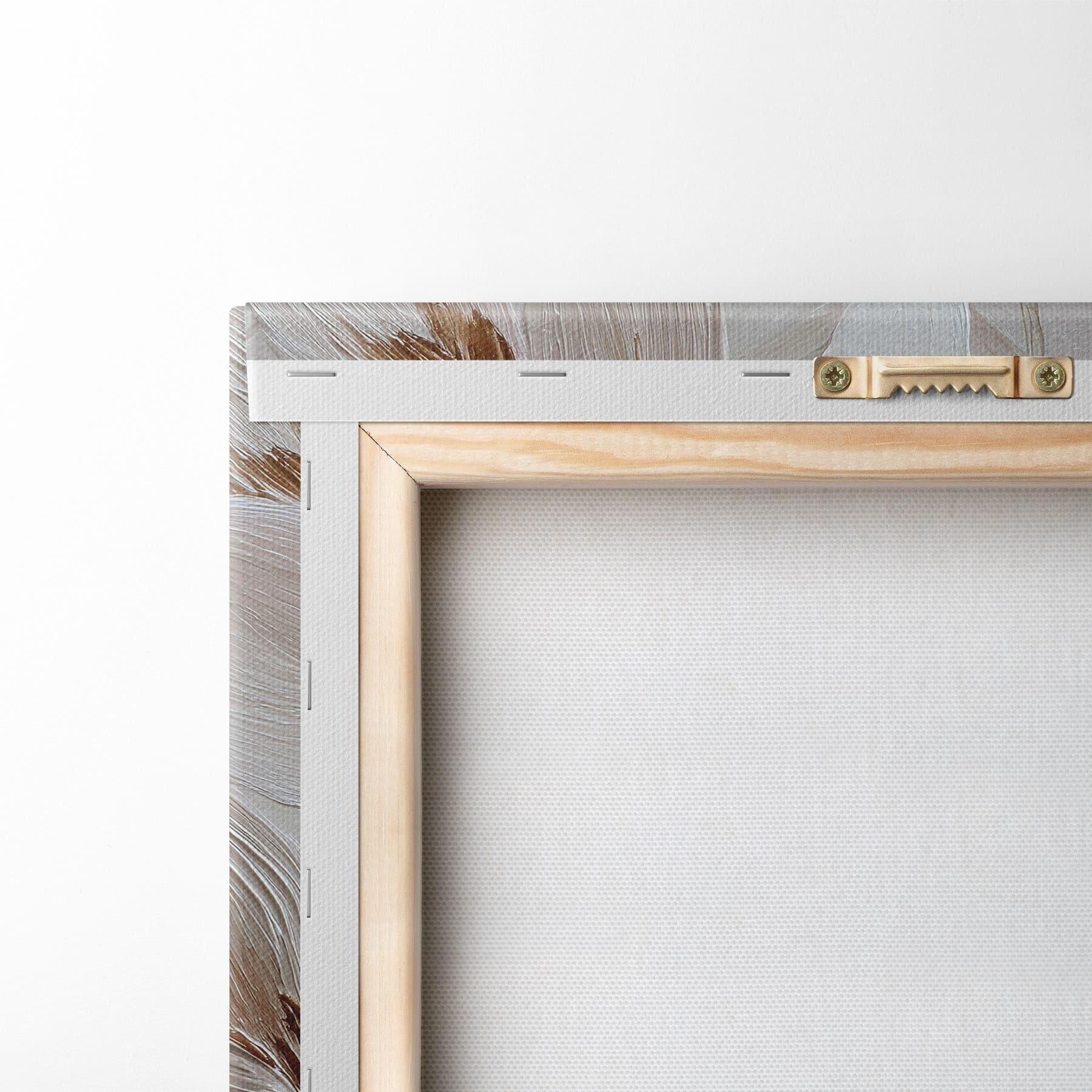 Sie können das Bild an Schrauben aufhängen. Dazu legen wir unseren Bildern Halterungen bei, mit denen Sie das Bild bequem aufhängen können.