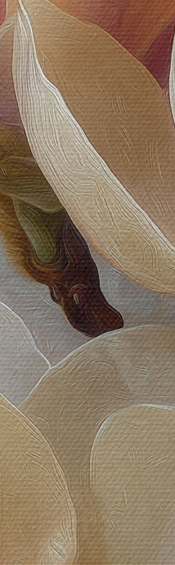 Um die Leinwand auf Keilrahmen zu spannen, ohne das Bild zu beschädigen, verwenden wir ein gespiegeltes Bild.