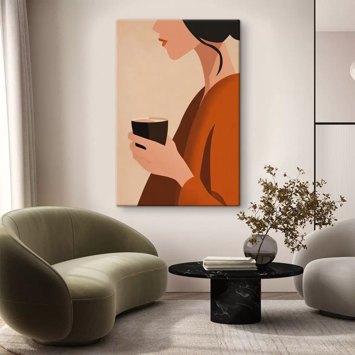 Gemälde Frau mit Tasse – Minimal Art. s49019