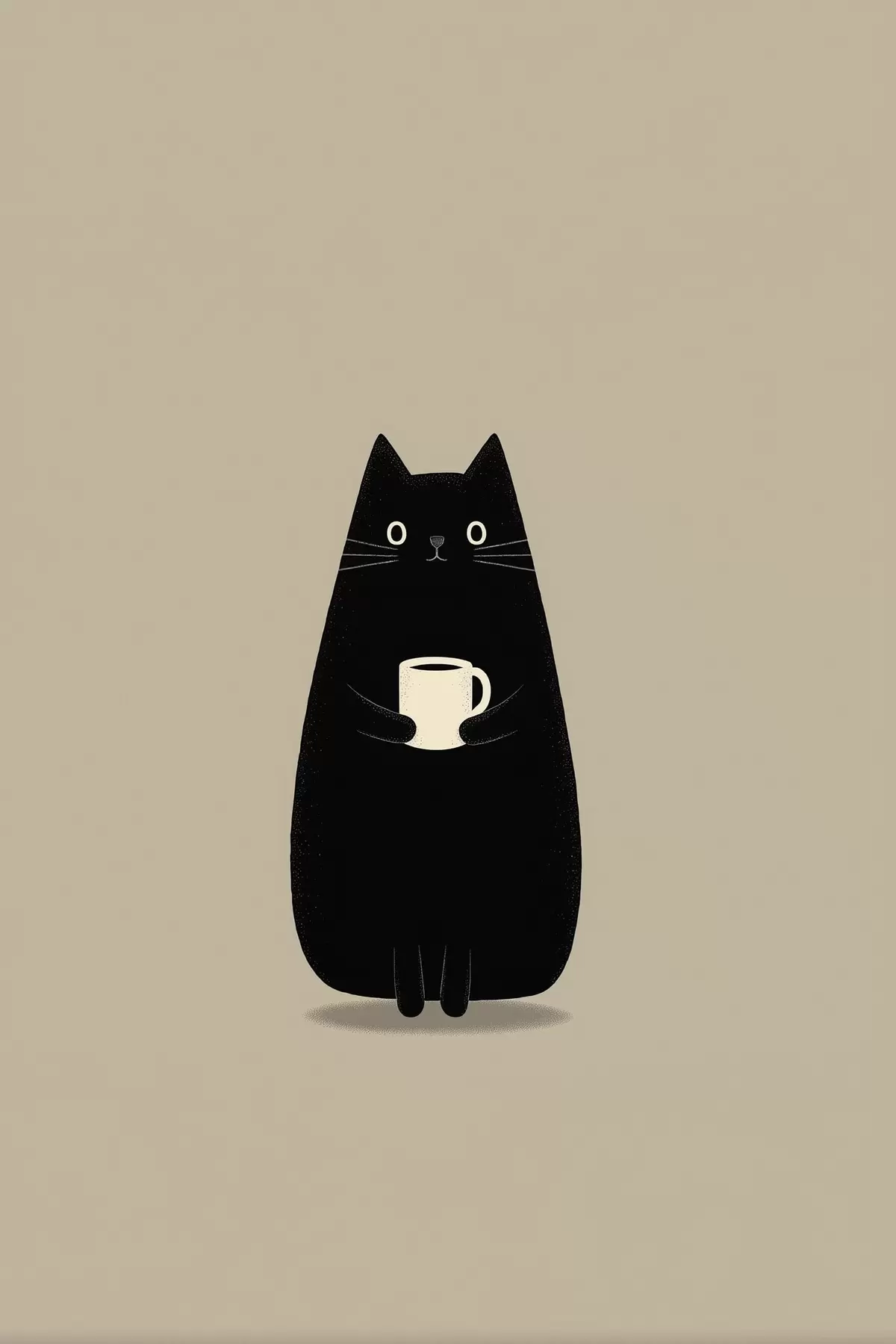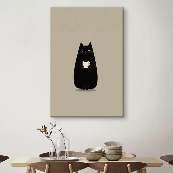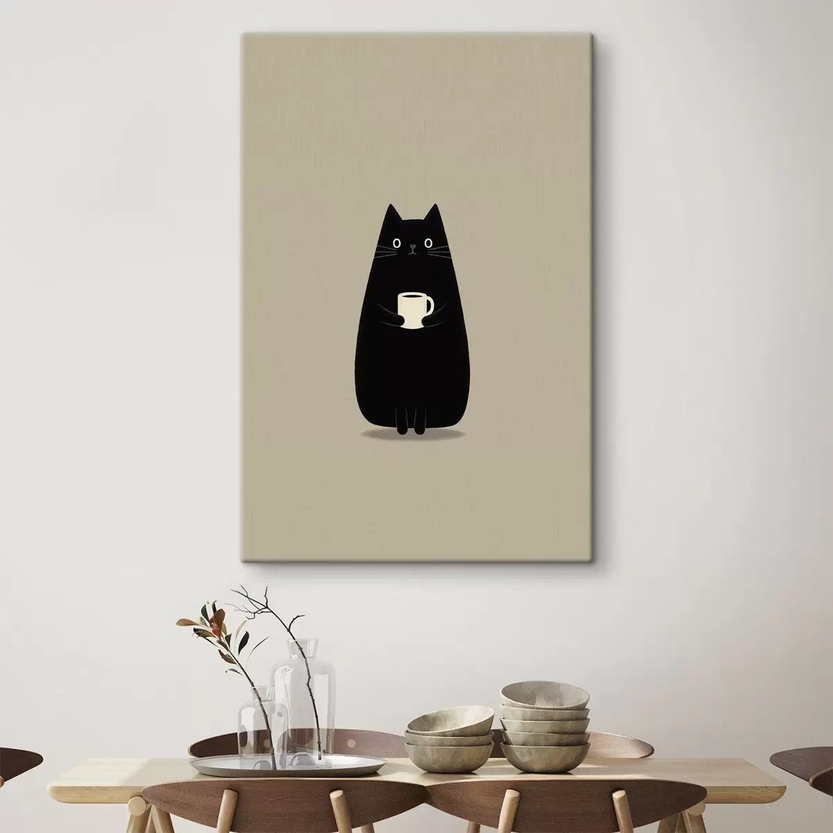 Gemälde Schwarze Katze mit einer Tasse Art. s49030