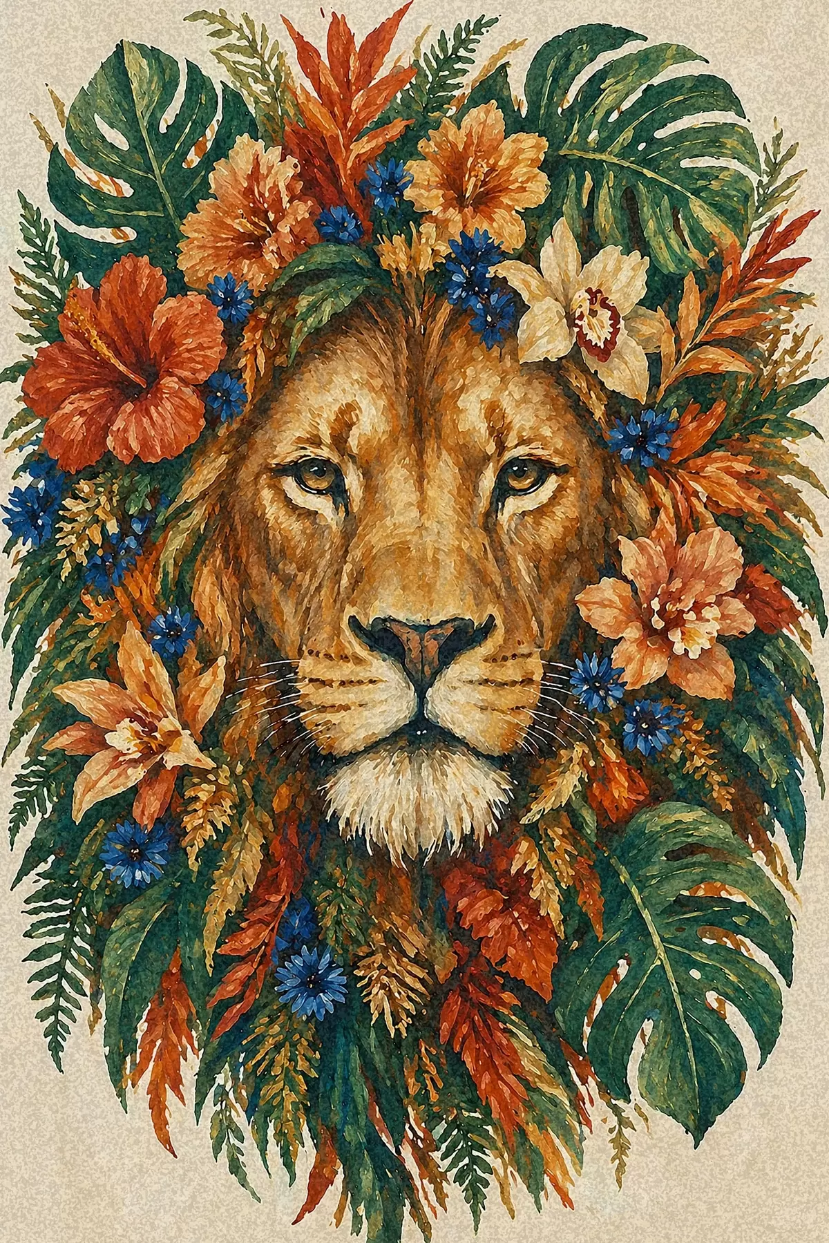 Gemälde Löwe mit Blumen Art. s49037